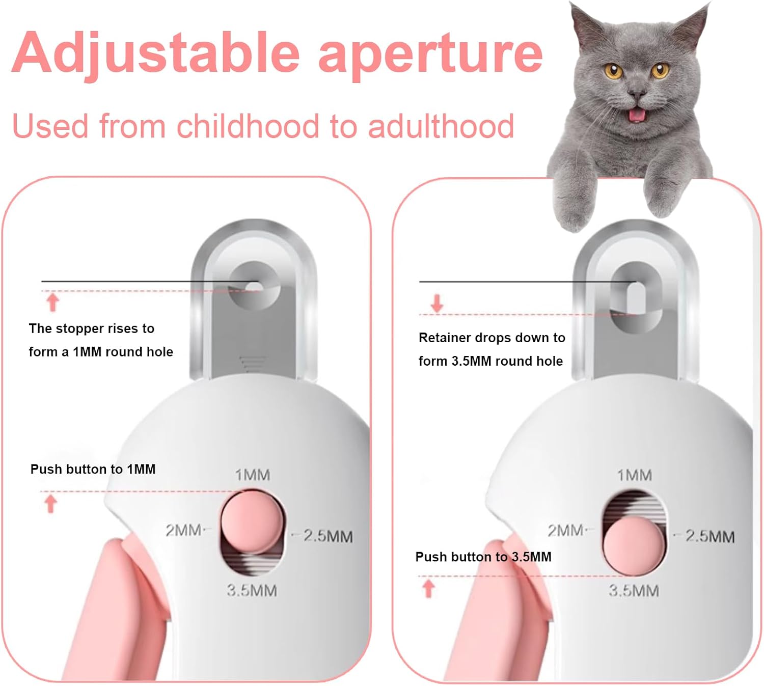 Pett Nail Clipper for Cats - Gentle Round-Hole Trimmer with Dust Storage | Adjustable Size & Hidden Nail File | Pet Grooming Tool for Safe & Loving Care (Pink)