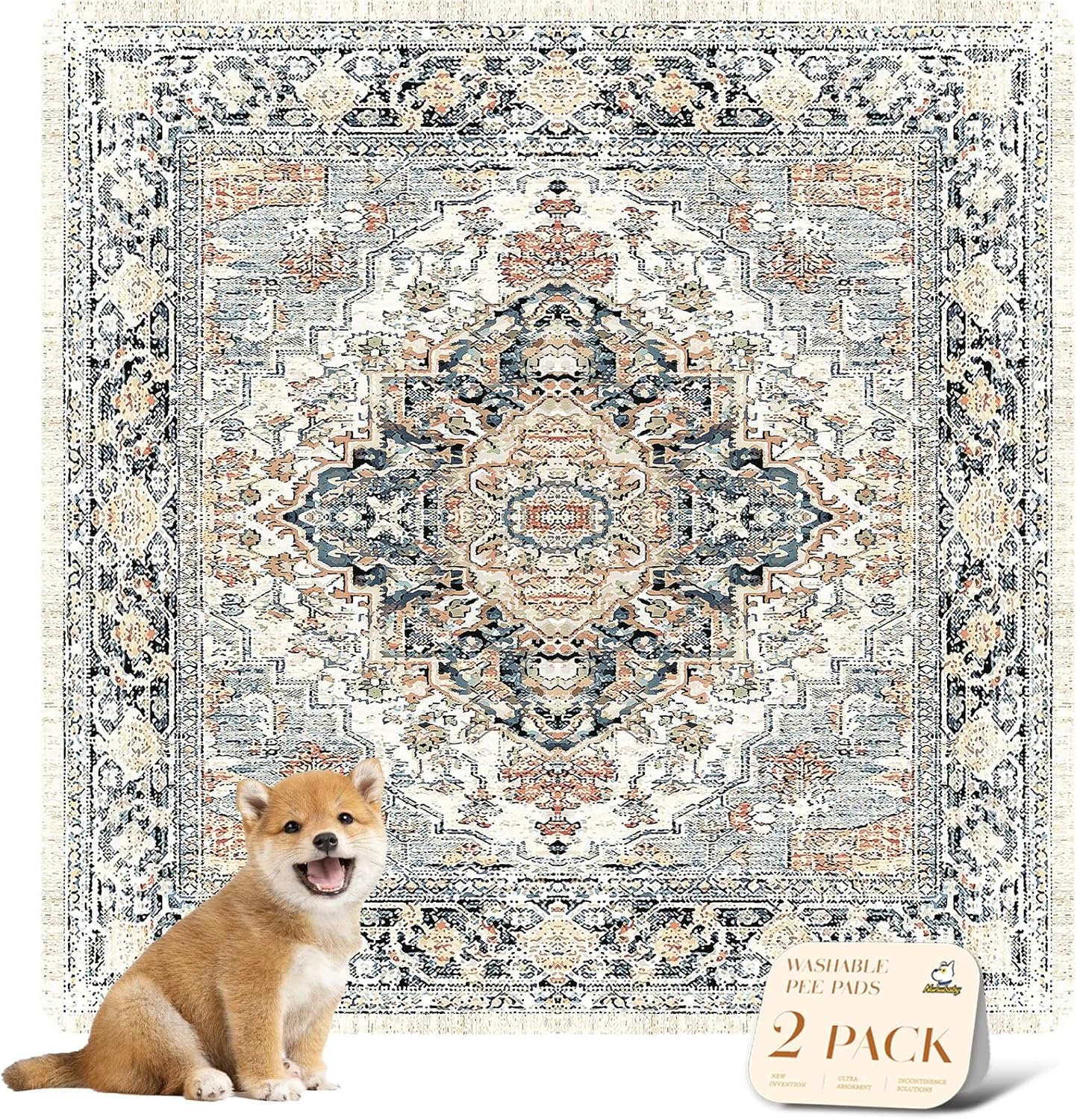 nunubaby Washable Pee Pads for Dogs, Stylish, Non-Slip and Leak-Proof Pee Pads. Reusable Potty Pads for Dogs for Crates and Floors.(Beige/Multi, 48" x48" )