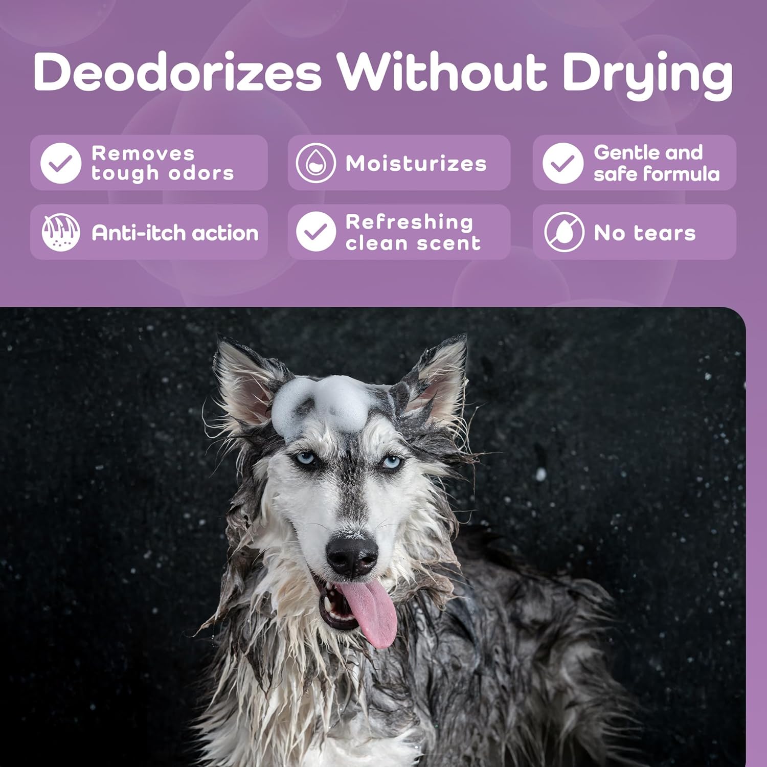 - Helps With Itching & Allergies – This gentle dog wash is designed to relieve dryness, dander, and sensitivity. It helps reduce scratching and flaking, making it an ideal dog shampoo for sensitive skin, allergy-prone breeds, or pets struggling with environmental irritants. We proudly do not test on animals when we create our cruelty-free products.