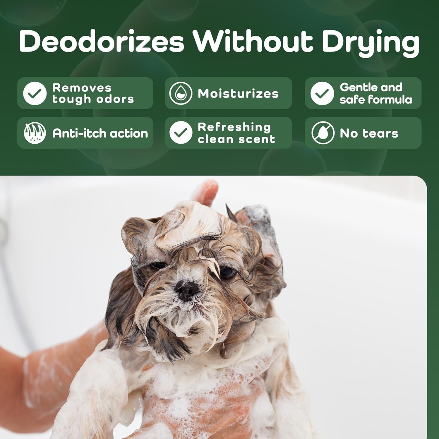 - Helps With Itching & Allergies – This gentle dog wash is designed to relieve dryness, dander, and sensitivity. It helps reduce scratching and flaking, making it an ideal dog shampoo for sensitive skin, allergy-prone breeds, or pets struggling with environmental irritants. We proudly do not test on animals when we create our cruelty-free products.