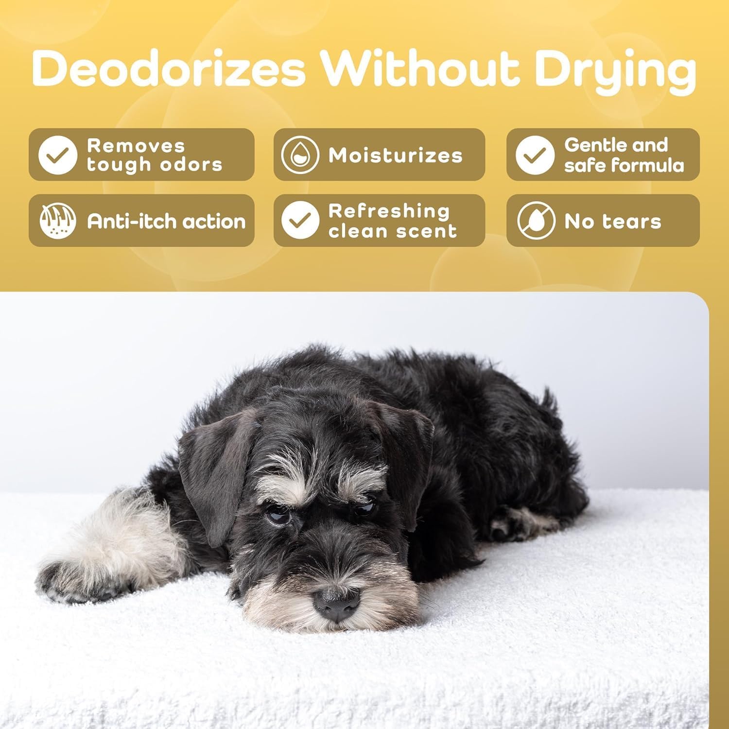 - Clean Scent, Deep Clean – This deodorizing dog shampoo combines shine-boosting botanicals with odor-fighting ingredients for a clean, lasting scent. Use it as a dog shampoo for smelly dogs, a dog shampoo and conditioner replacement, or part of your regular dog grooming shampoo routine.