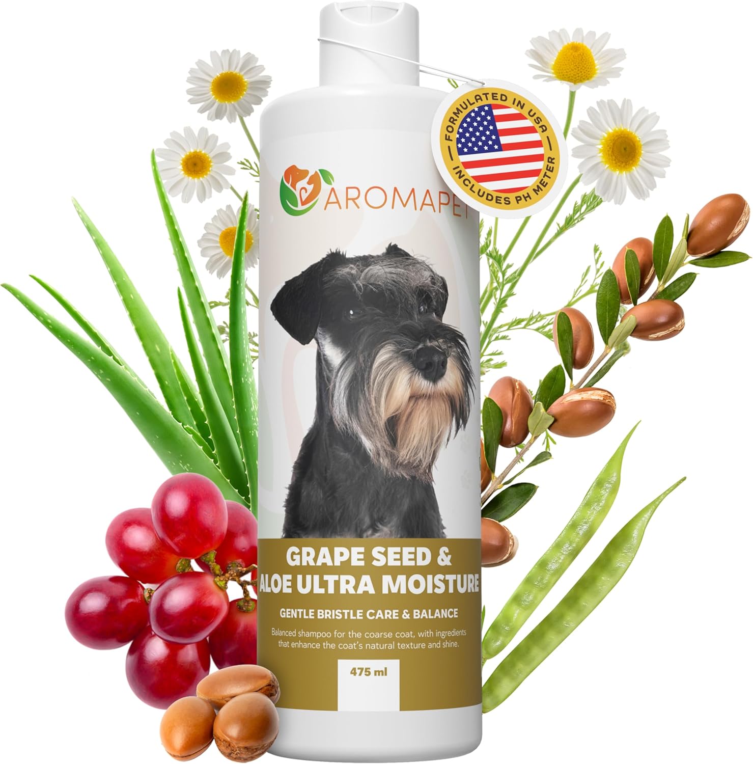 Grape Seed & Aloe Ultra Moisture for Coarse Coats Dog Shampoo - Deodorizing. Great for Schnauzer & Sensitive Skin - Hypoallergenic Dog Shampoo Gentle Bristle Care.