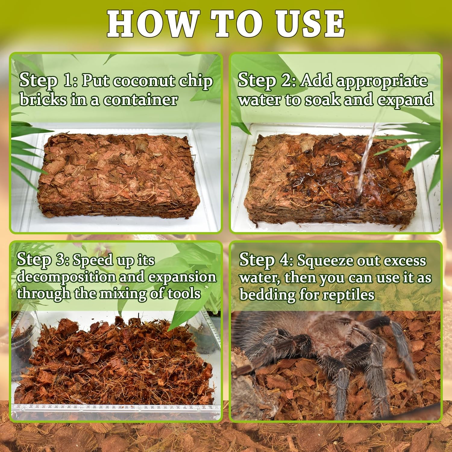 - Safe & Quality Materials: Coconut chips made from natural and organic coconut fiber, 100% organic and sustainable, dust-free compostable, odor-free, gentle on skin and scales, natural coco chips mimic the natural habitat of reptiles and provide a safe, clean, natural growing environment for your reptiles