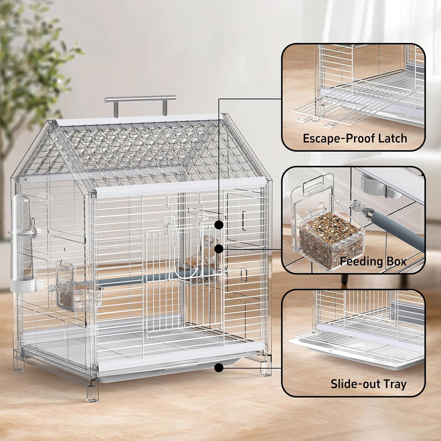 - 【360° Observation】The transparent side panels allow birdwatchers to observe your bird's activities from any angle, whether it's their joyful hopping, leisurely foraging, or melodious singing, all in full view.