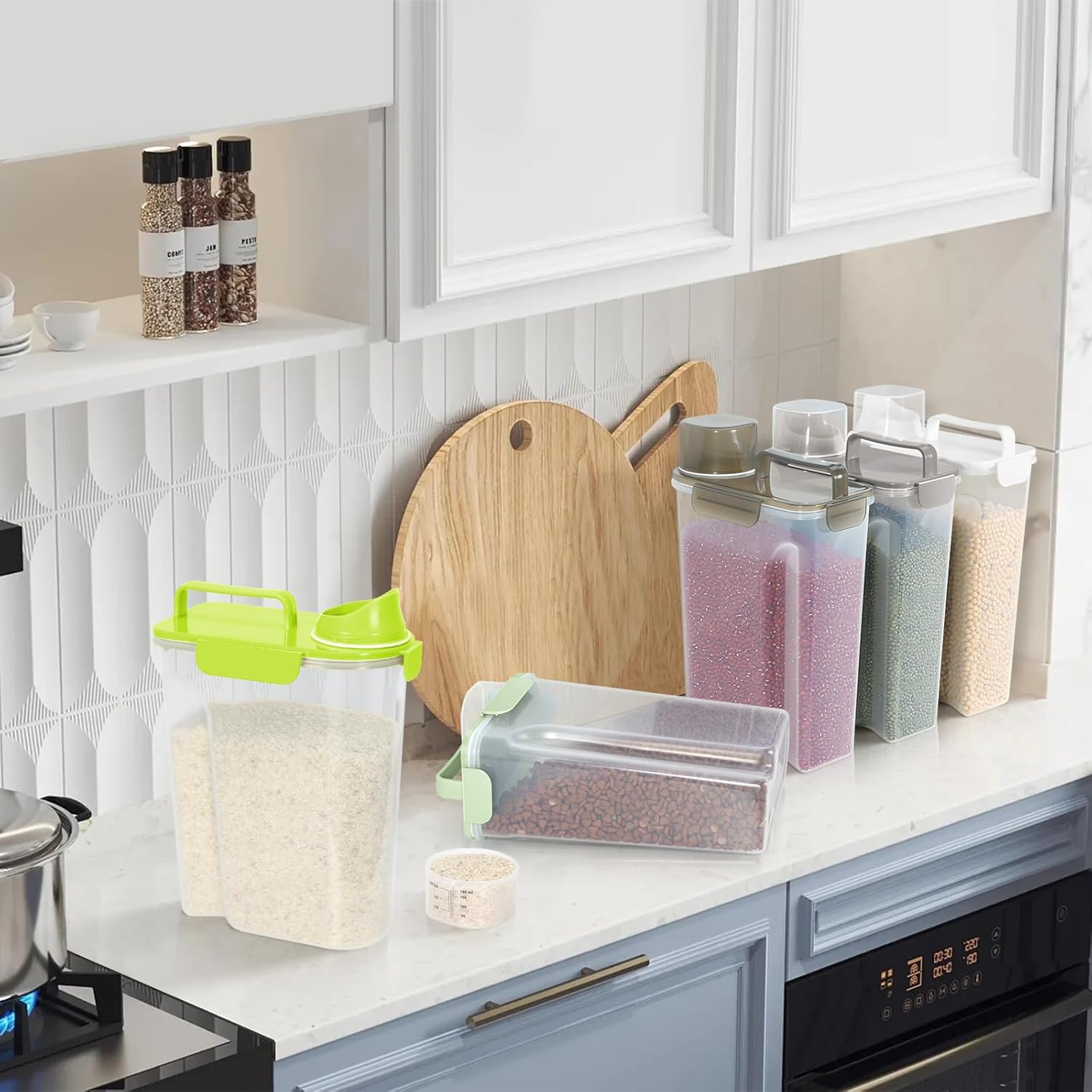 - MULTI-PUrRPOSE STORAGE:Our pet food container is suitable for storing dog food、cat food、bird seed、fish food、rice、 dry food、cereals、oats、cat litter 、flour and other large and small grains, as well as washing powder used at home. It is also a good choice.