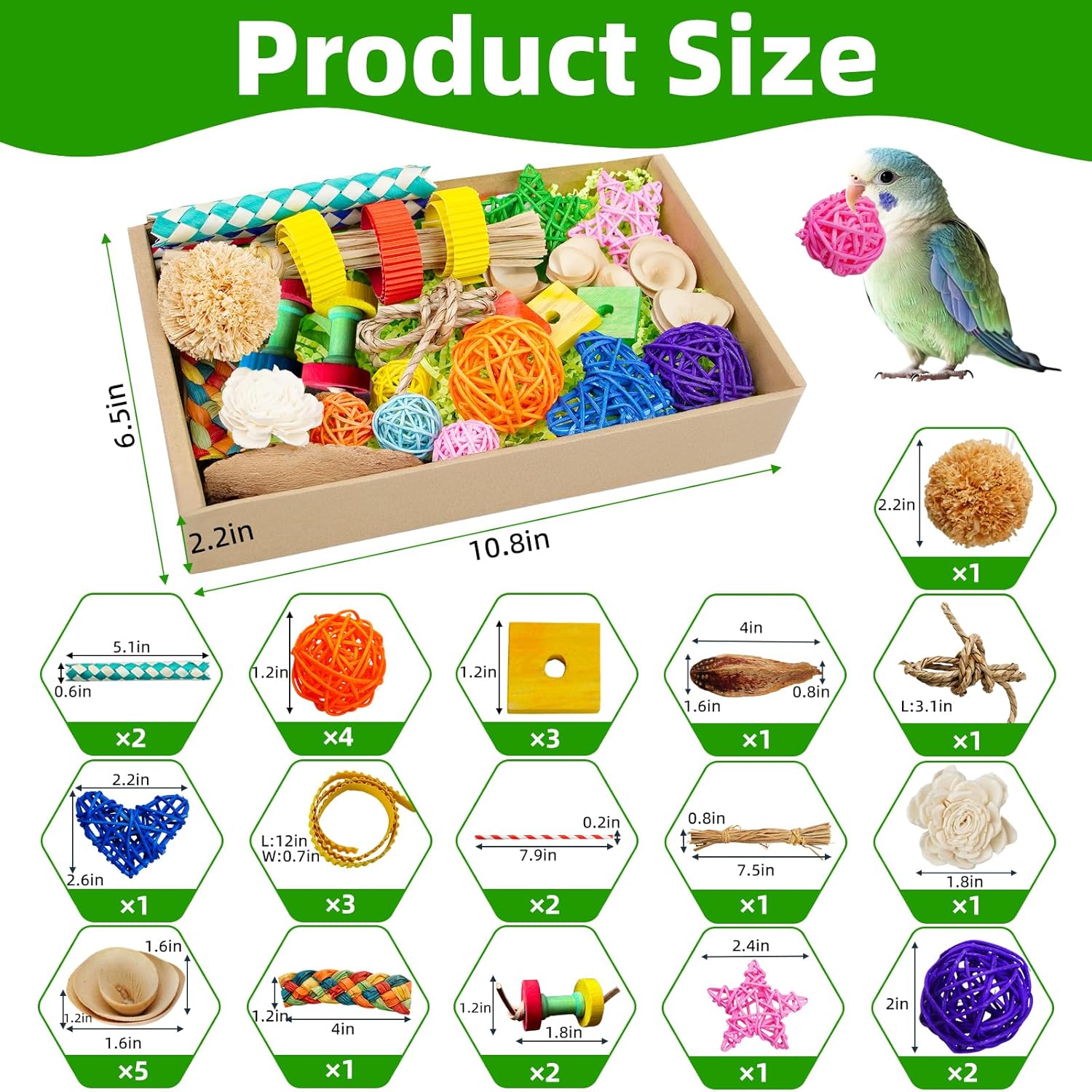 - SAFE AND NON-TOXIC MATERIALS: made of various handmade materials, including straw, grass ball, rattan ball, rattan ball, five-pointed star, love, leather rope, paper straw, rich materials to meet the picky nature of feather friends