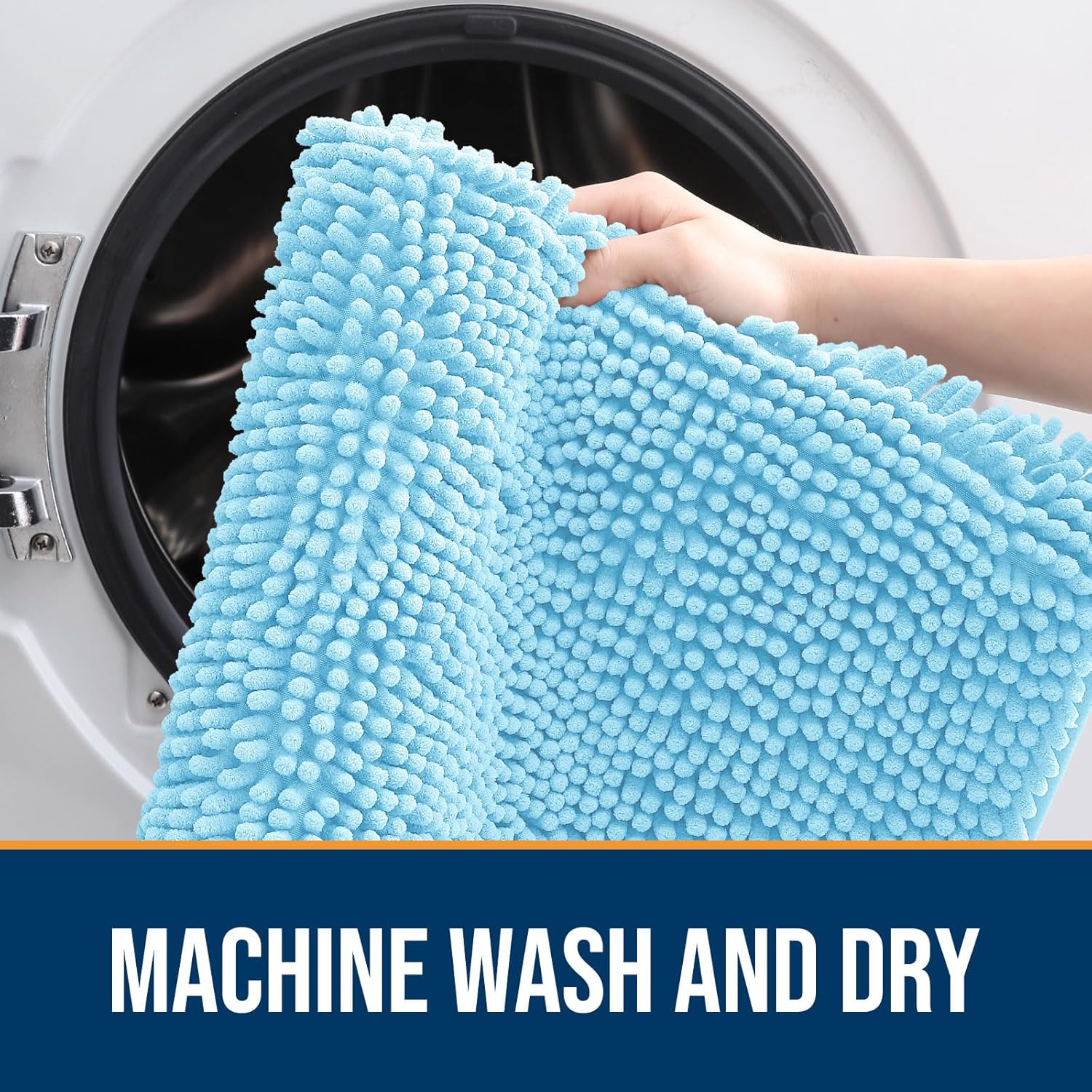 OLANLY Dog Door Mat for Muddy Paws 70x46, Absorbs Moisture and Dirt, Absorbent Non-Slip Washable Doormat, Quick Dry Chenille Mud Mat for Dogs, Entry Indoor Entryway Carpet for Inside Floor, Blue
