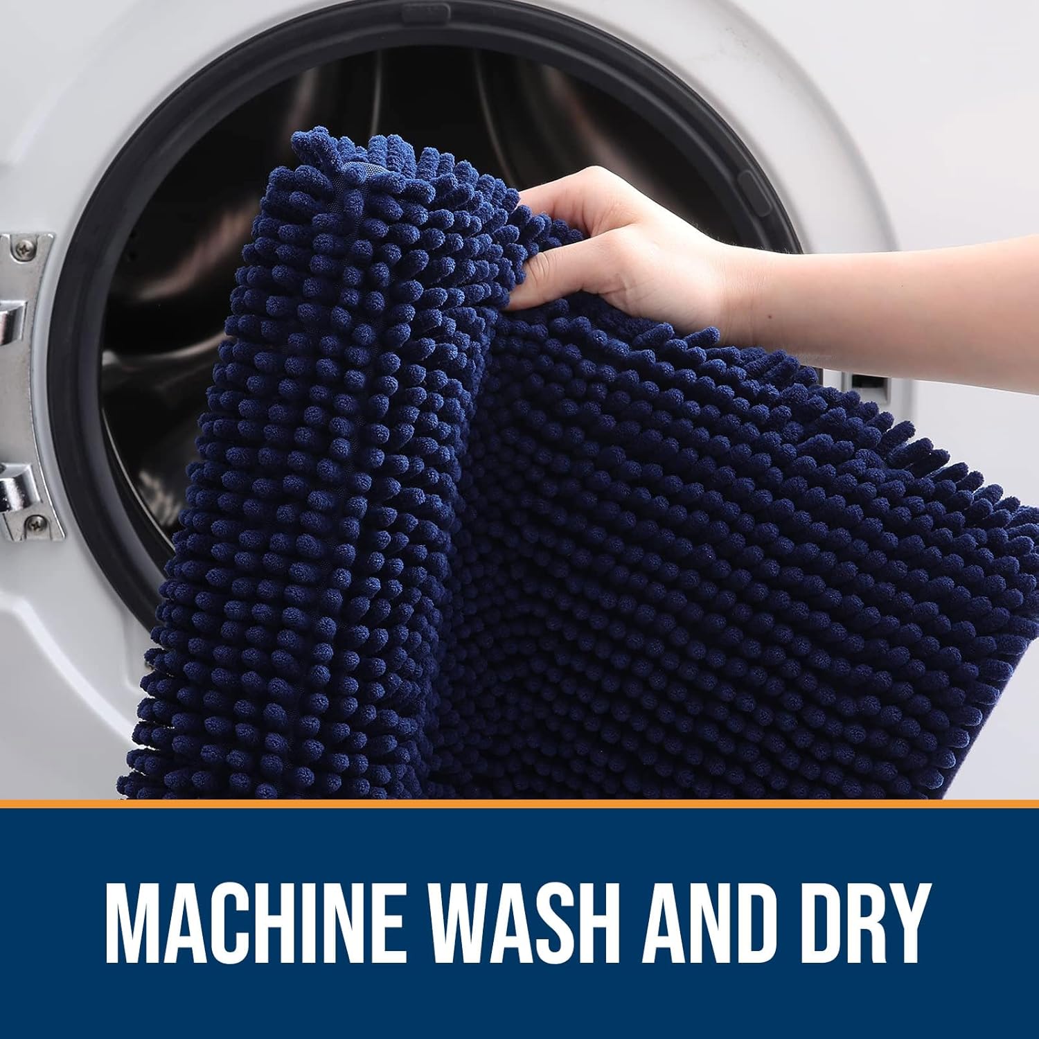 OLANLY Dog Door Mat for Muddy Paws 44x24, Absorbs Moisture and Dirt, Absorbent Non-Slip Washable Doormat, Quick Dry Chenille Mud Mat for Dogs, Entry Indoor Entryway Carpet for Inside Floor, Navy Blue
