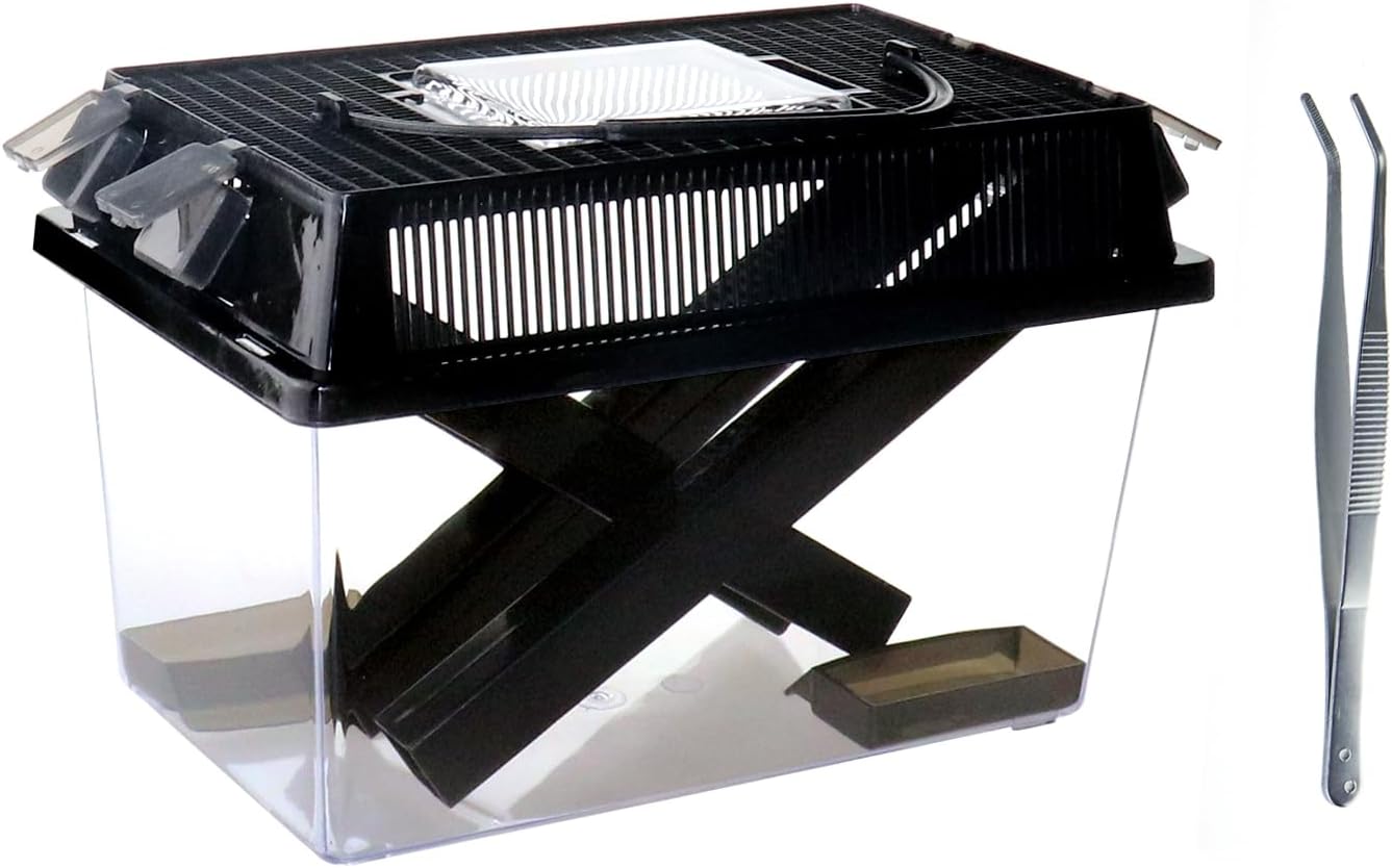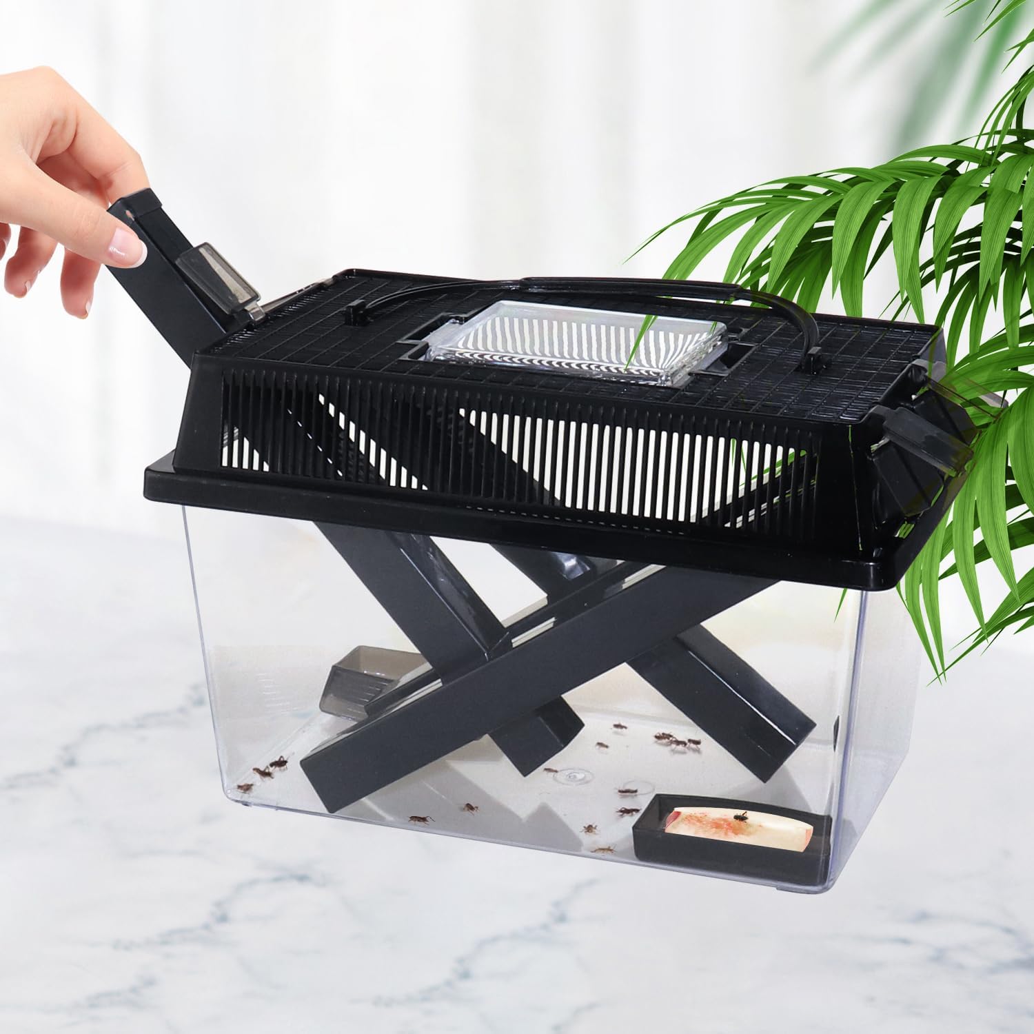 NANEEZOO Cricket Keeper, Equipped with Water & Food Feeding Dish, High Transparency Cricket Pen with Dispenser Tubes, Insect Keeper for Gecko Snake Lizards Reptiles (Large)