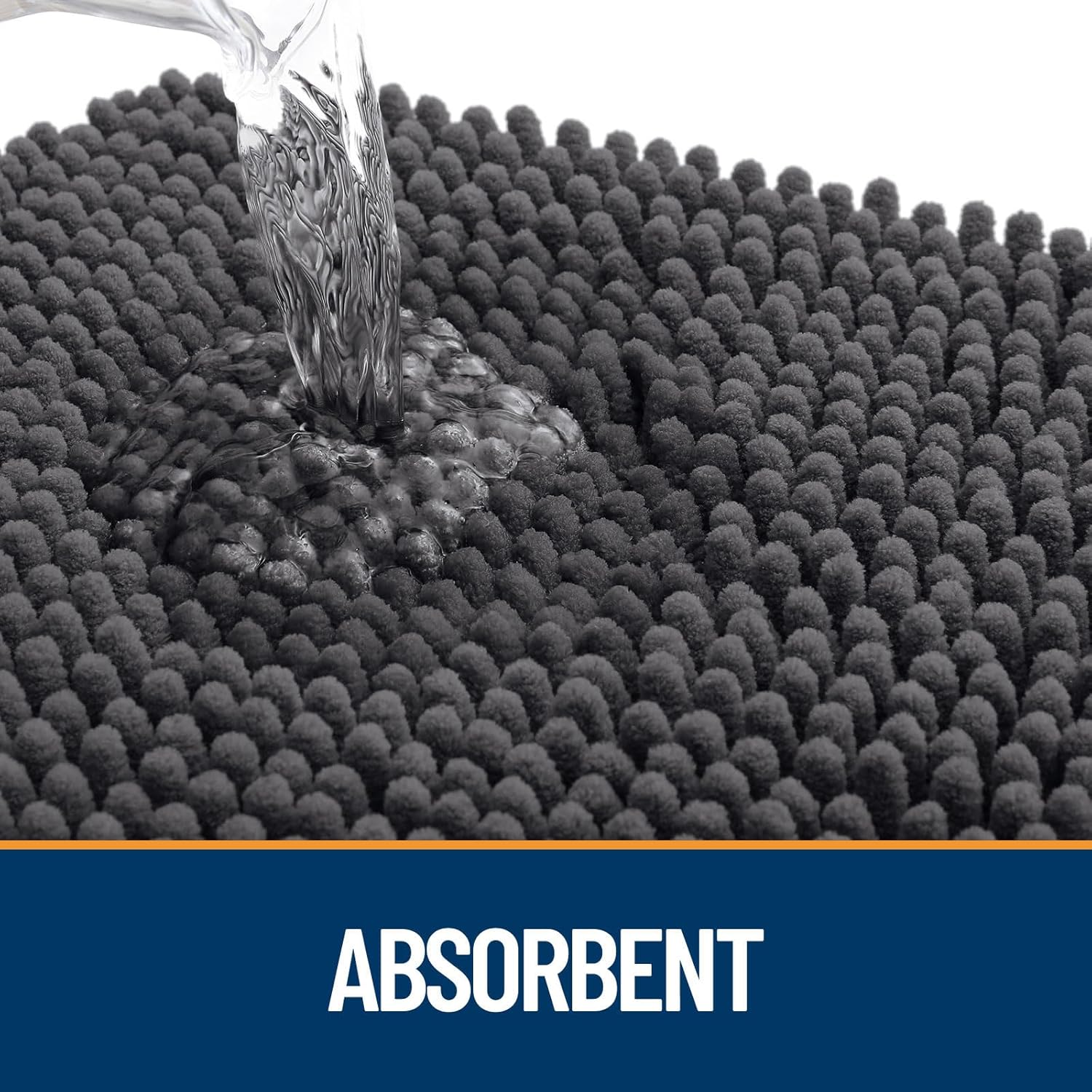 OLANLY Door Mat for Muddy Dog Paws 24x16, Ultra Absorbent Chenille Mud Doormat with Paw Print Design, Non-Slip Washable Doormat for Indoor Entryway, Quick-Dry Pet Bed Mats for Dirty Dogs, Dark Grey
