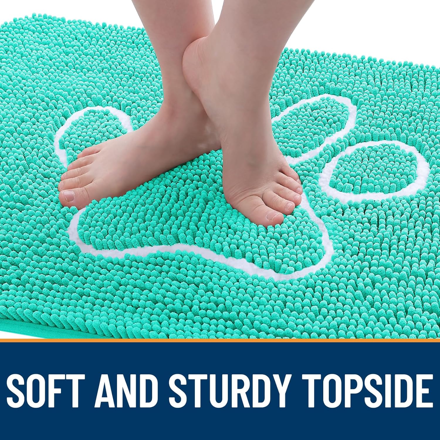 OLANLY Door Mat for Muddy Dog Paws 40x32, Ultra Absorbent Chenille Mud Doormat with Paw Print Design, Non-Slip Washable Doormat for Indoor Entryway, Quick-Dry Pet Bed Mats for Dirty Dogs, Teal