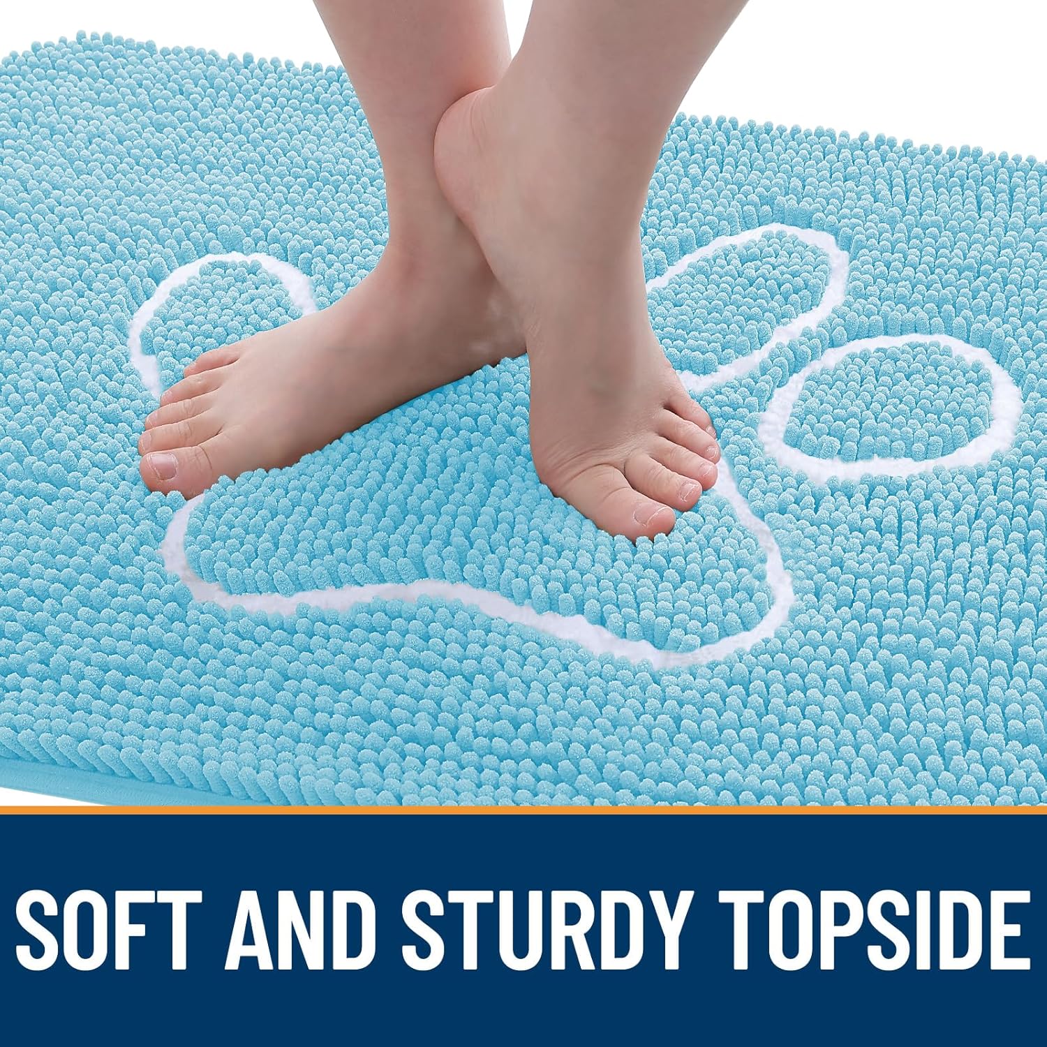 OLANLY Door Mat for Muddy Dog Paws 48x30, Ultra Absorbent Chenille Mud Doormat with Paw Print Design, Non-Slip Washable Doormat for Indoor Entryway, Quick-Dry Pet Bed Mats for Dirty Dogs, Blue