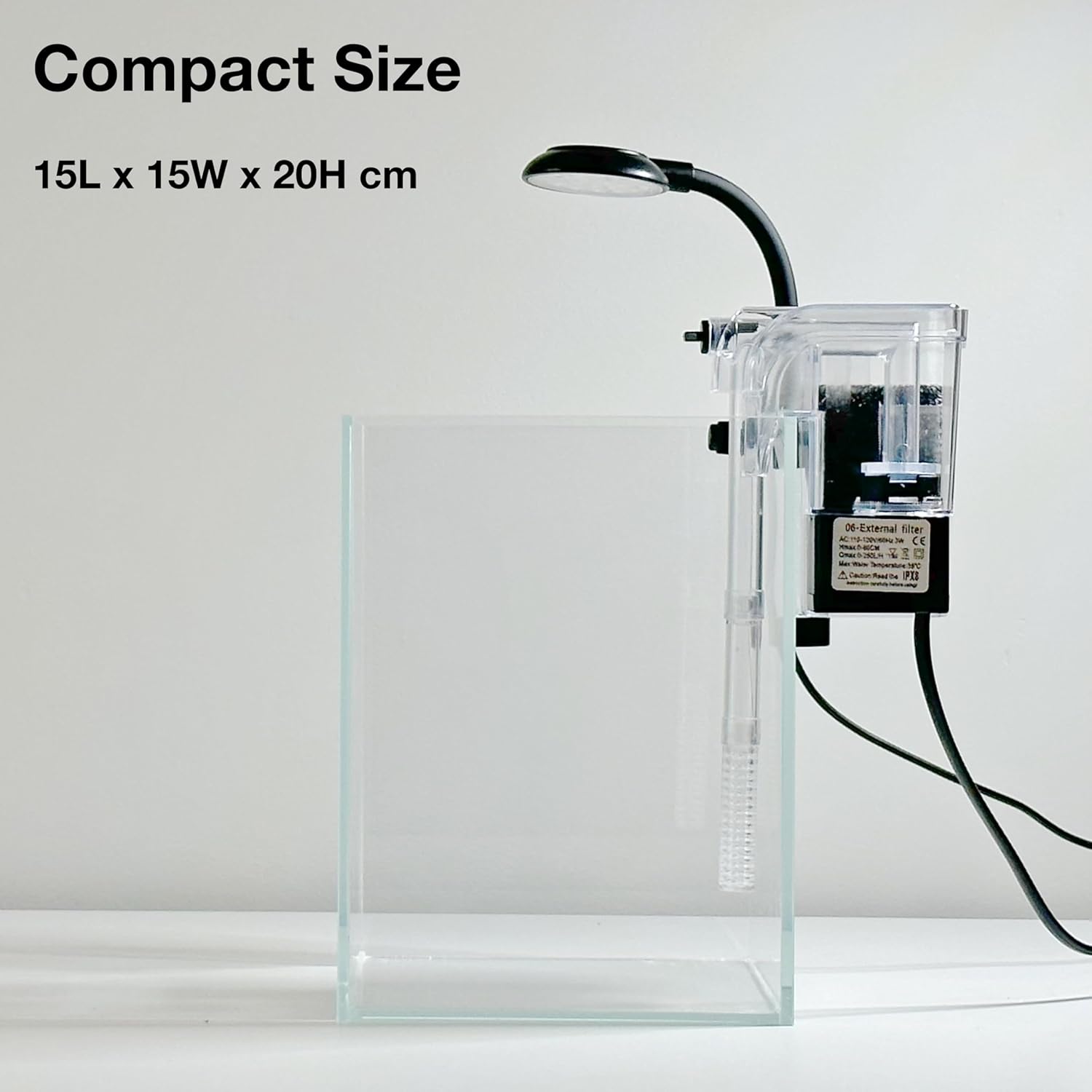 - 【Compact Size – Ideal for Small Fish & Shrimp】: Measuring L6 x W6 x H8 inches (15 x 15 x 20 cm), this small fish tank is perfect for housing betta fish, guppies, goldfish, shrimp, or other nano fish species. The high-transparency glass material provides a full view of your aquatic world, making it an eye-catching addition to your space.