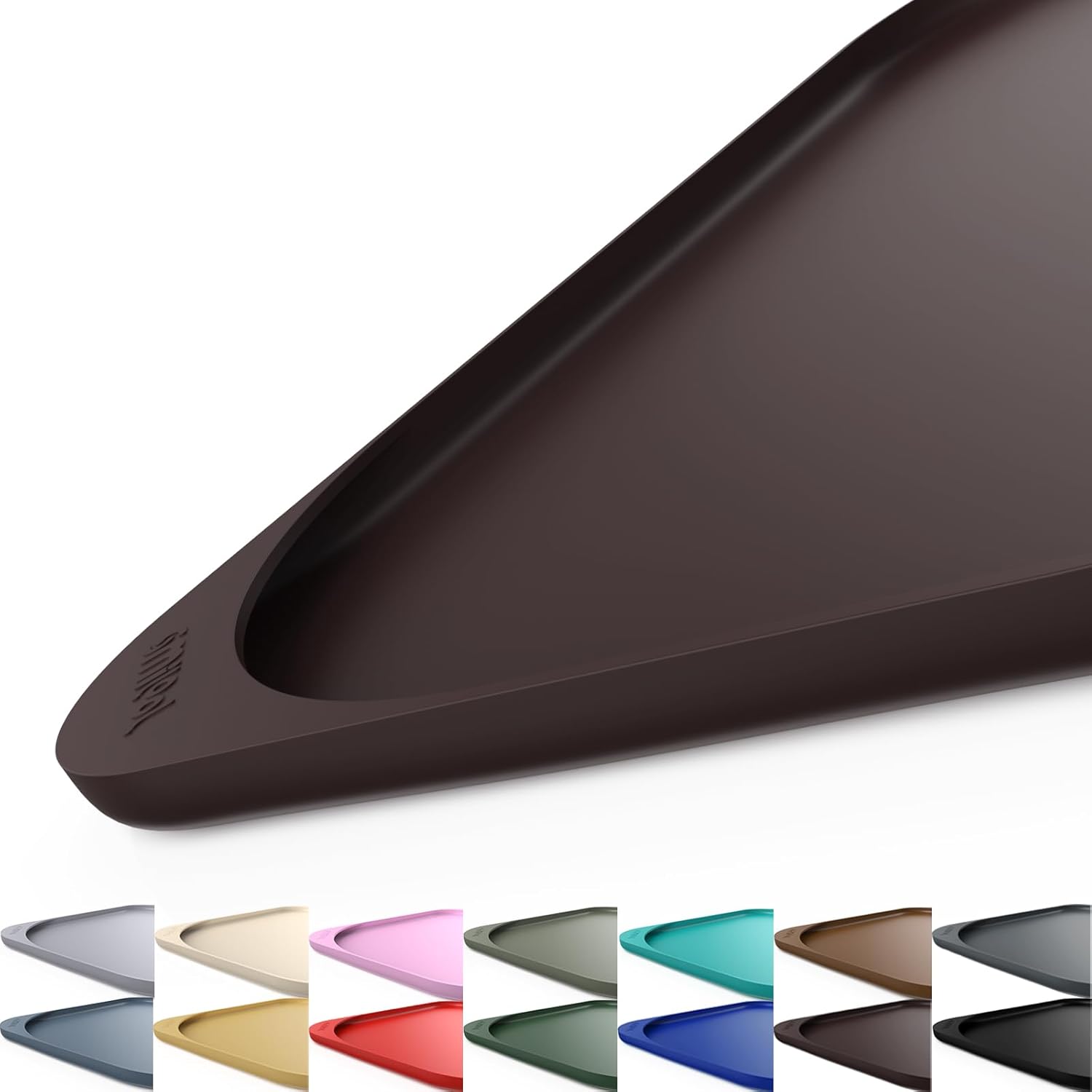 Silicone Pet Feeding Mat with Raised Edge & Residue Collection Pocket for Food and Water, Dog Bowl Mats, Cat Bowls Placemat with High Lip for Floor Waterproof, 19 x 12 x 0.7 Dark Brown