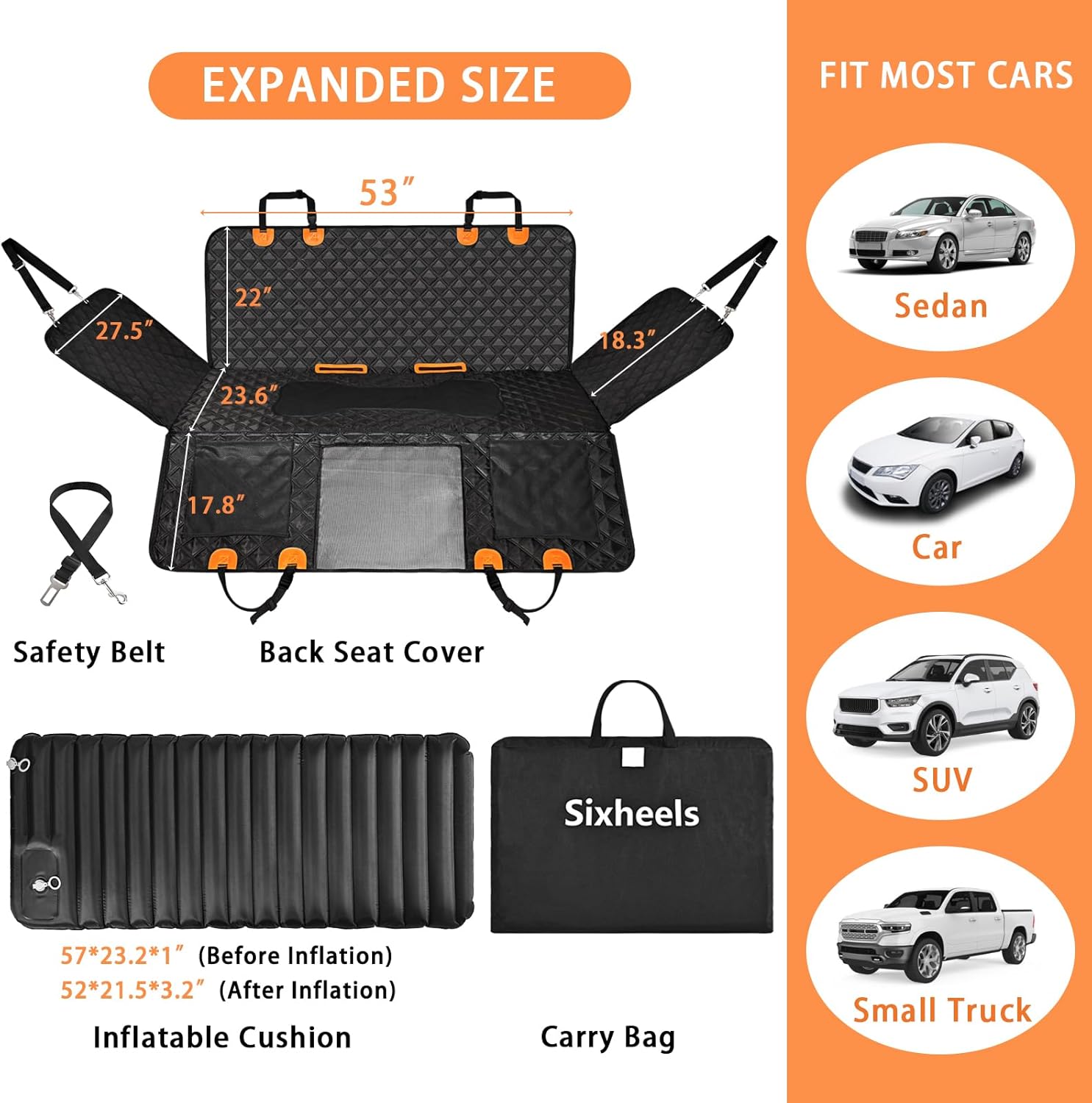 Car Back Seat Pet Cover for Dogs Back Seats Protector, Soft Inflatable Cushion Backseat Extender Comfortable Dog Hammock, Waterproof Dog Bed Rear Travel Accessories for Car,SUV,Truck