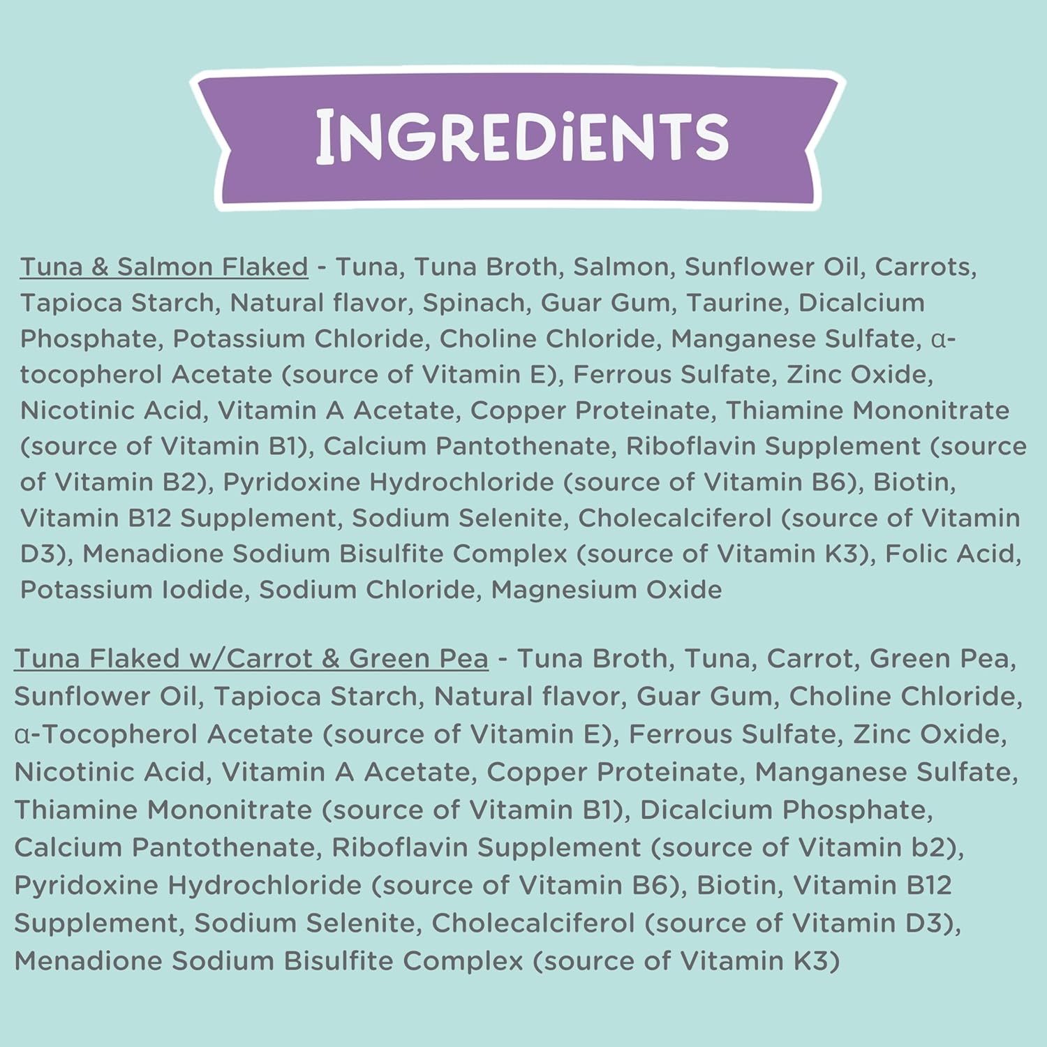 - GRAIN FREE & NON-GMO: Our tuna, salmon, & chicken variety pack is prepared without any grains, artificial additives, or by-products, as our goal is to feed cats the way nature intended. We always source wholesome ingredients to promote optimal health and nutrition.