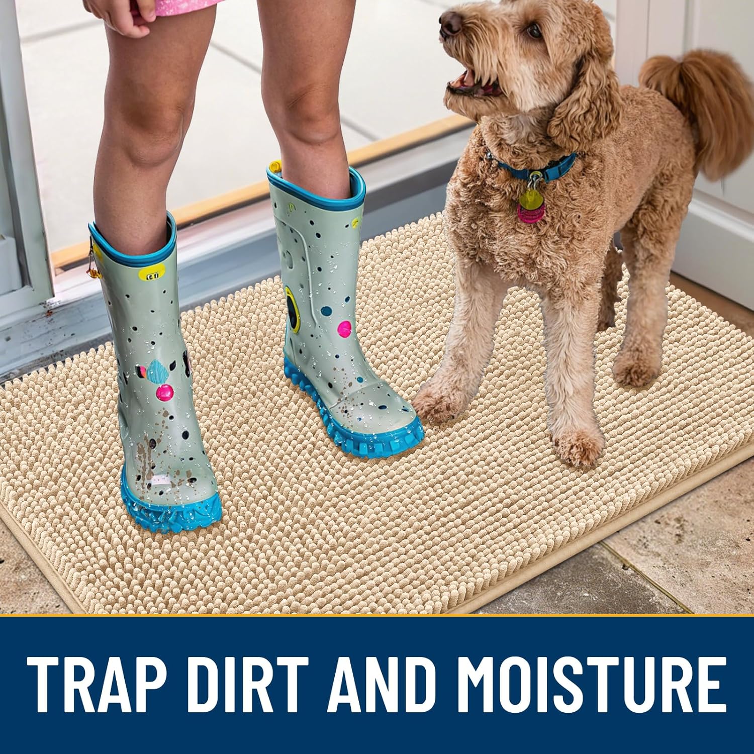 Smiry Dog Door Mat for Muddy Paws 48x30, Absorbs Moisture and Dirt Doormat, Non-Slip Washable Quick Dry Chenille Front Door Mat Indoor Entrance, Entryway Carpet for Inside Floor, Beige