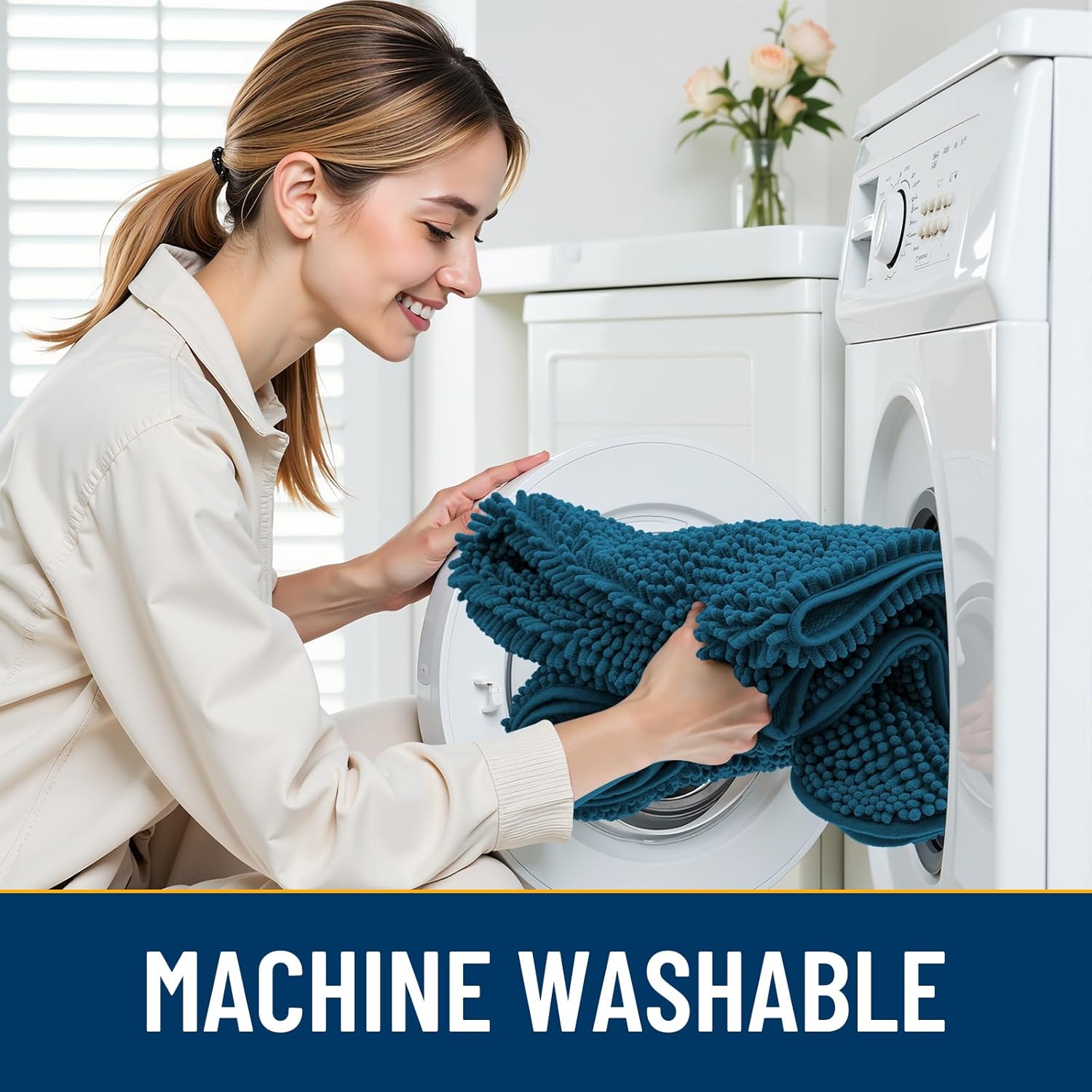 - [Absorbent and Dirt Trapper] High-density chenille dog mat, super absorbent and dirt-catching, whether wet after shower, muddy or moisture bring back by dogs, it can absorb well, so that you and your favorite pet can say goodbye to the wet and mud. It's an excellent choice for use as an entryway door mat, a welcome door mat or a dirt-trapping door mat.