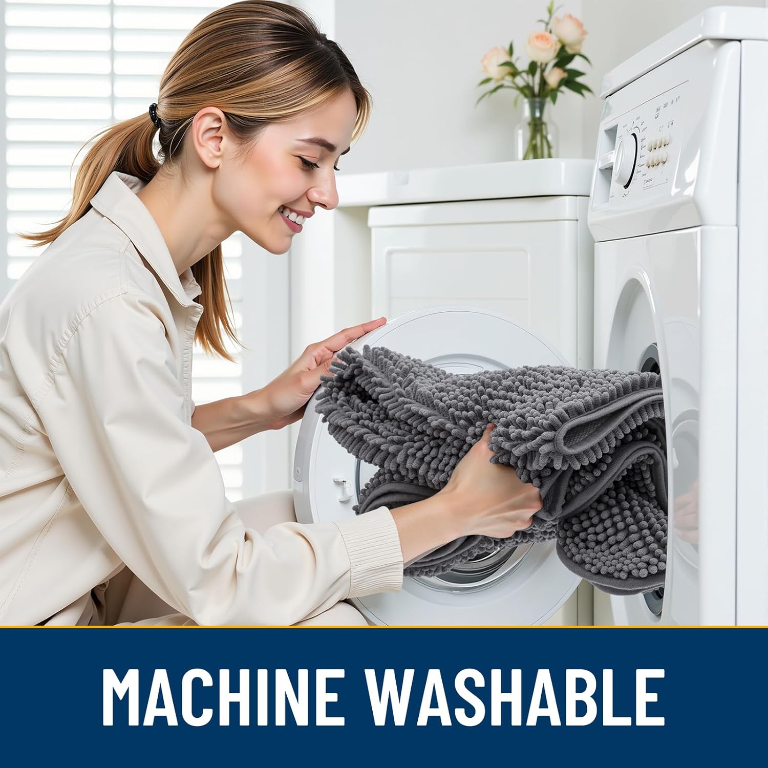- [Absorbent and Dirt Trapper] High-density chenille dog mat, super absorbent and dirt-catching, whether wet after shower, muddy or moisture bring back by dogs, it can absorb well, so that you and your favorite pet can say goodbye to the wet and mud. It's an excellent choice for use as an entryway door mat, a welcome door mat or a dirt-trapping door mat.