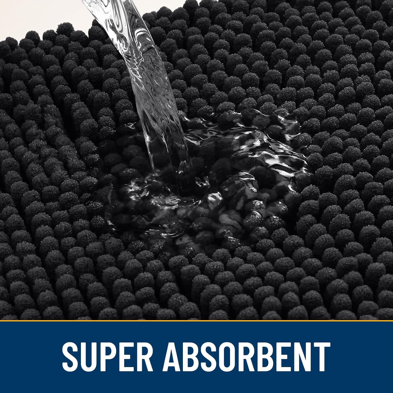 Smiry Dog Door Mat for Muddy Paws 47x24, Absorbs Moisture and Dirt Doormat, Non-Slip Washable Quick Dry Chenille Front Door Mat Indoor Entrance, Entryway Carpet for Inside Floor, Black