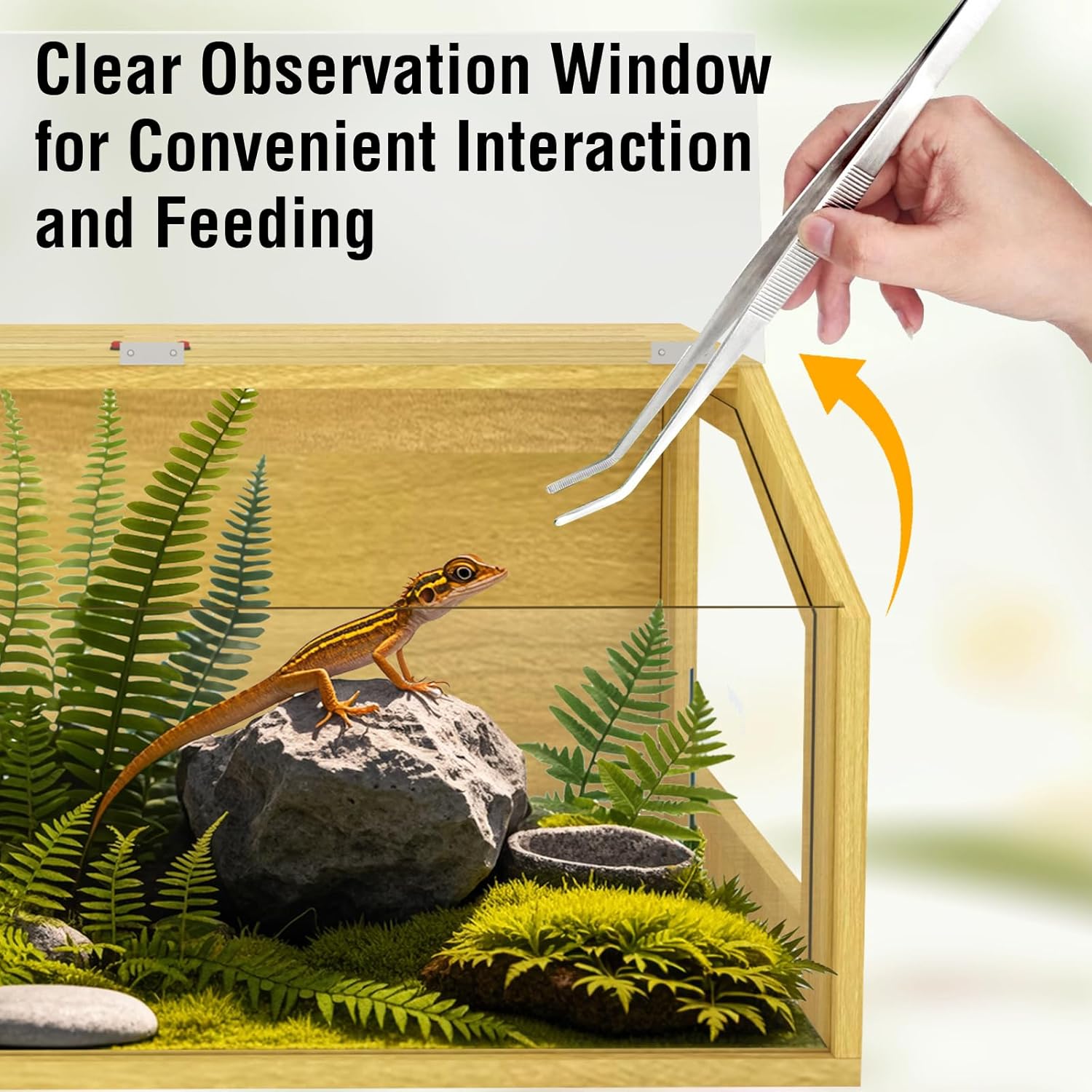 - Natural and Modern Fusion: The FHNI reptile terrarium tank is crafted from thick natural wood and thick clear acrylic materials, featuring eccentric bolt assembly for enhanced stability and durability; Please note: This reptile enclosure is not suitable for water storage