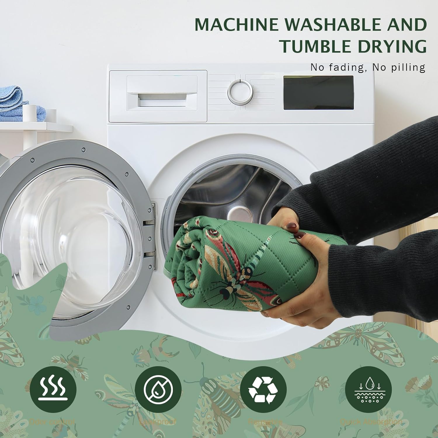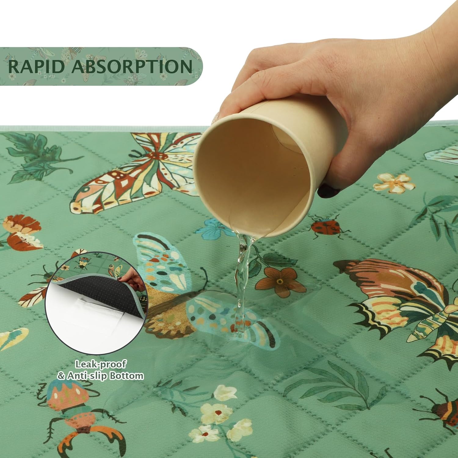 IEUUMLER Washable Pee Pads for Dogs, 1 Pack Insect Pattern Reusable Waterproof Puppy Potty Pads, Non-Slip Absorbent Pet Training Pads for Playpen Crate Bed EU014