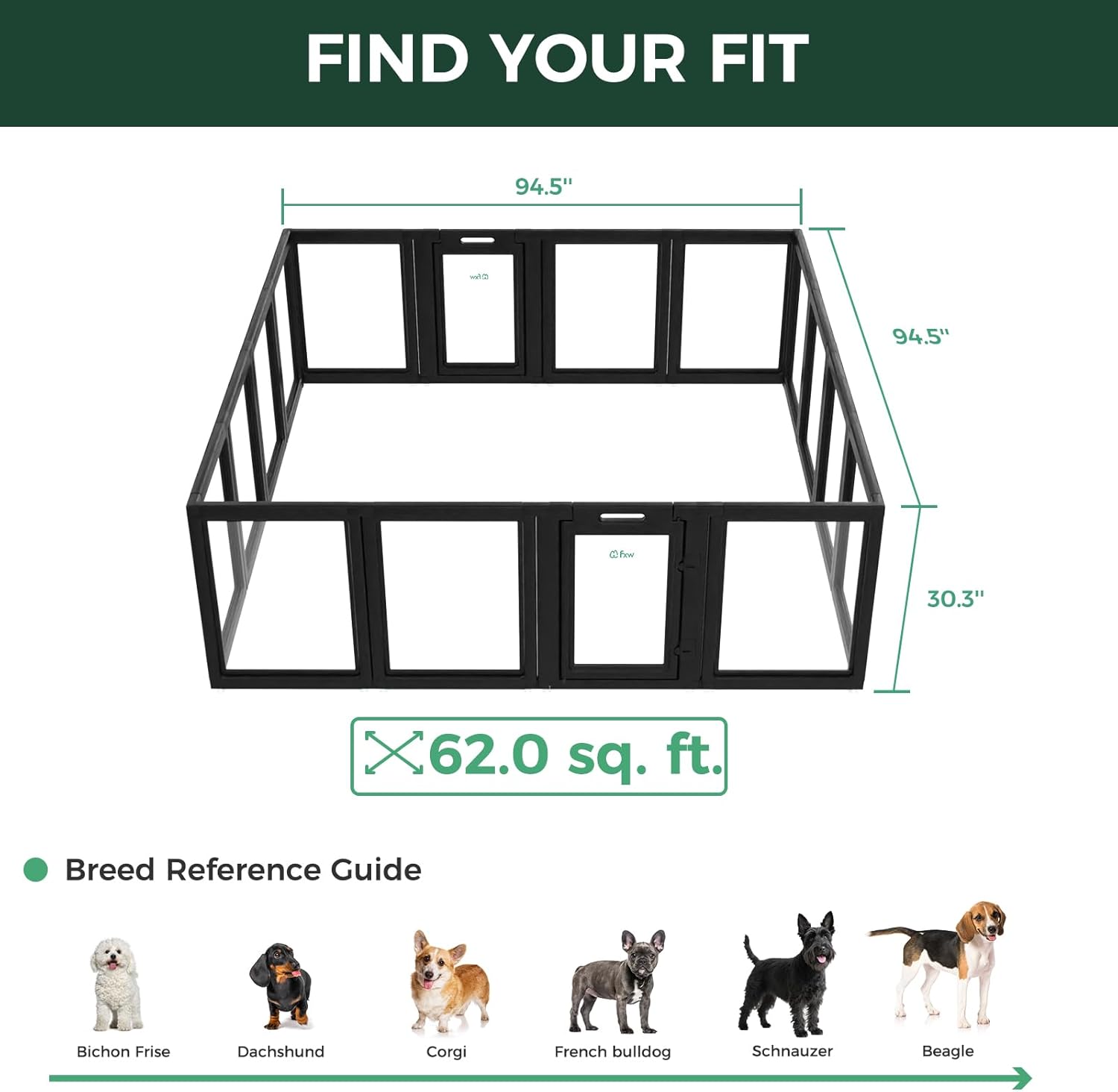 - Escape-Free, Safe Play: Transparent and seamless panels create a secure playpen to keep energetic dogs safely inside, preventing them from climbing out or getting their paws stuck in gaps.