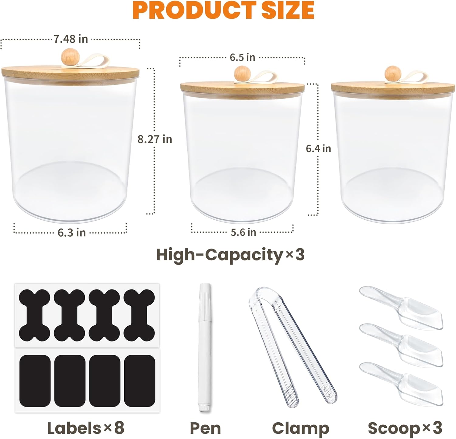 3 Pack Airtight Dog Food Storage Container, Dog Treat Container Dog Food Containers with Bamboo Lids 8x7''&6x5'',Pet Food Storage Container,Cat Food Container with Scoops,Clamp,Labels,Pen