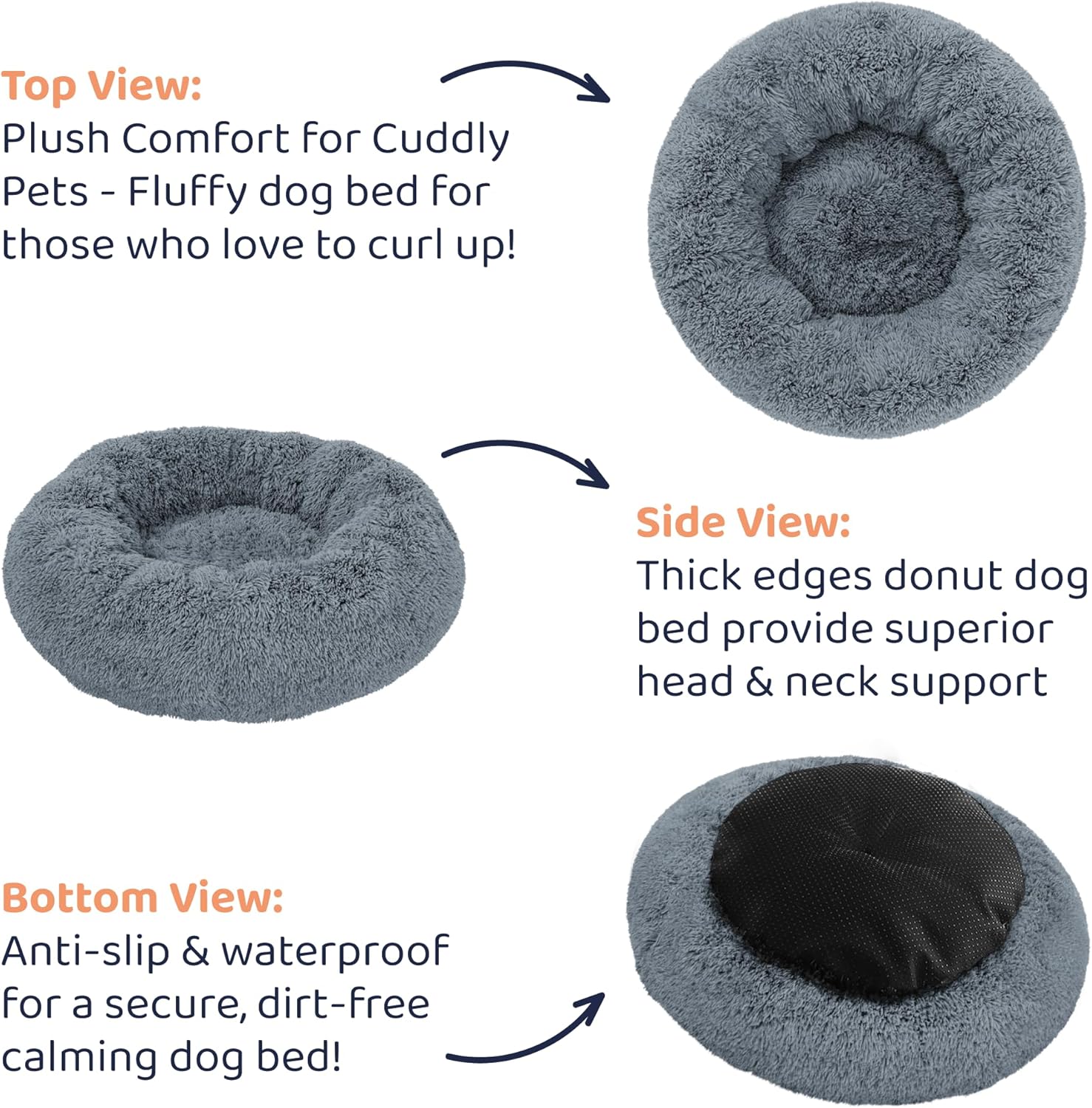 Donut Dog Bed - Premium Comfort for Anxiety Relief - Fluffy & Calming Design with Ultra-Plush Support | Cozy Round Dog Bed with Super Soft Circle Style (Size L Dark Grey)