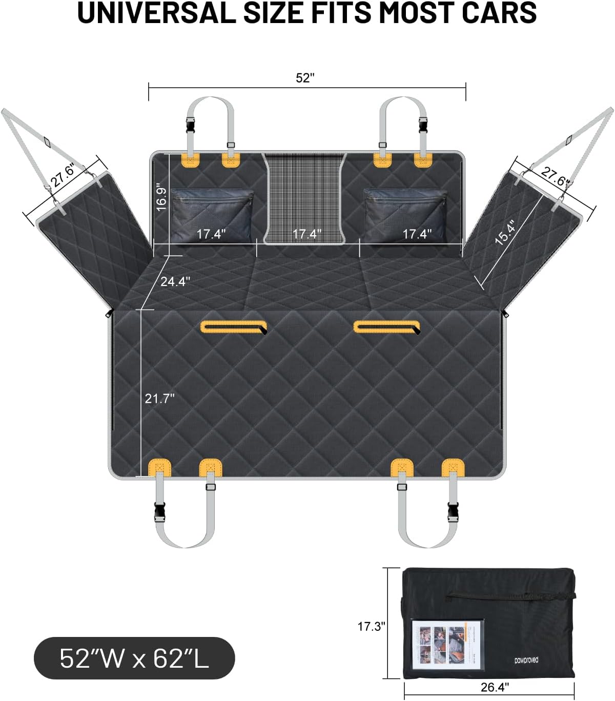 - Extended Activity Space: Our car hammock (52.3”W x 24.4”D) prevents footwell sliding, expands space by 40%, and ensures safety for movement and stretching to ease travel anxiety. Offers full rear-seat coverage, ideal for large breeds, older dogs, or multi-dog households.