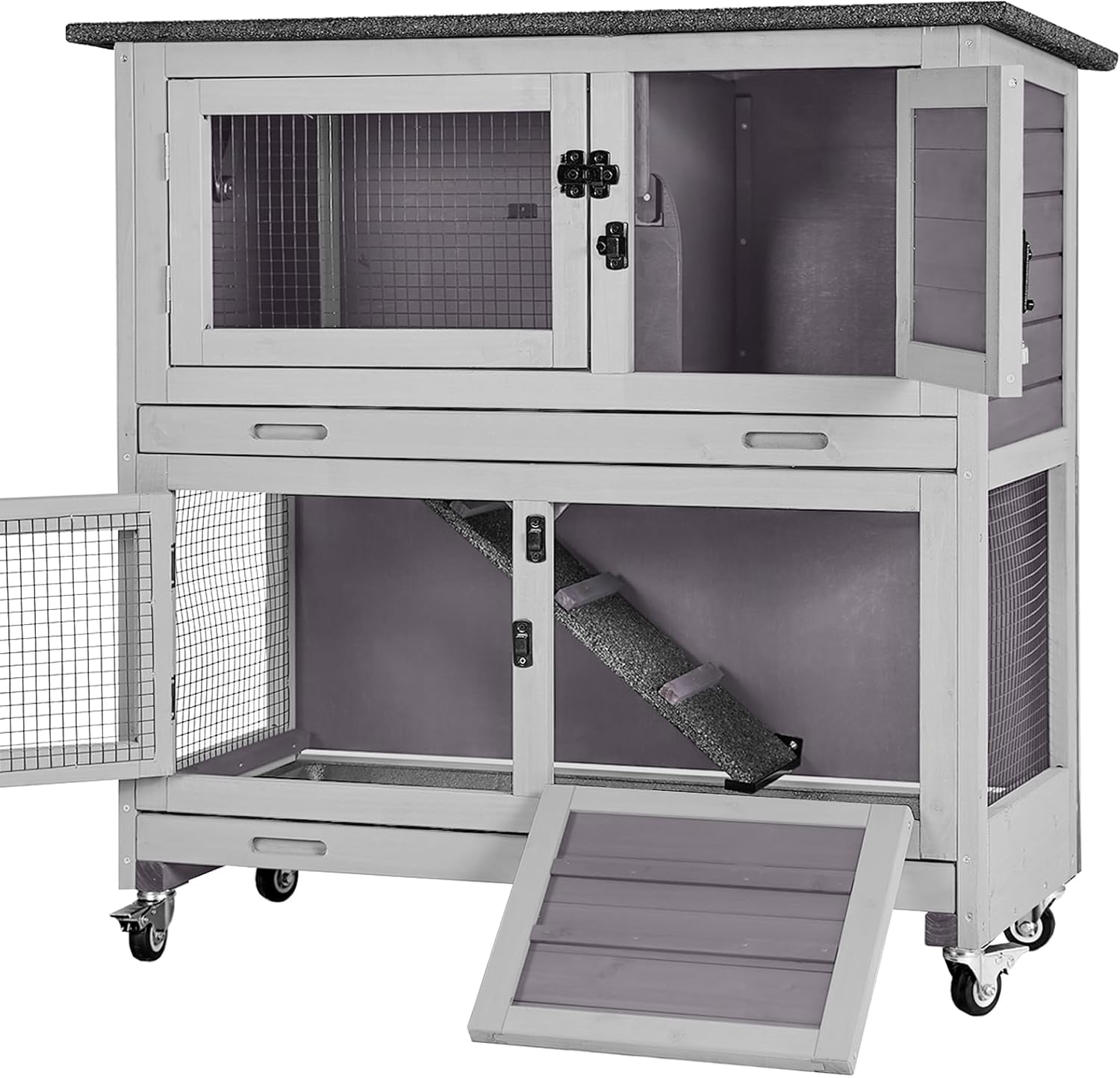 - Versatile Sliding Door: A hinged trap door separates upper and lower levels, perfect for raising different pets or caring for your bunny in a dedicated space