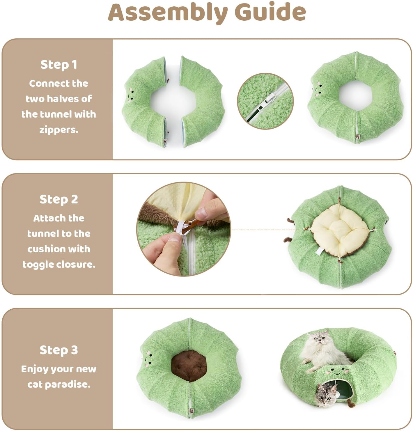- Versatility: The innovative 2-in-1 cat tunnel bed allows your pet to play and rest at the same time. Designed with the excitement of a zippered play tunnel and the serenity of a cozy nap.