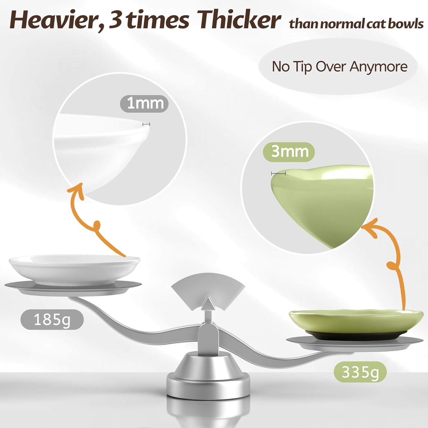 - 【No Slide, No Clank Noise】: To prevent slidding, we designed a integrated silicone base, ensures that the food bowl will not tip over or move easily during feeding time. Besides, the silicone base can protect your floors, and reduces the noise from clanking.