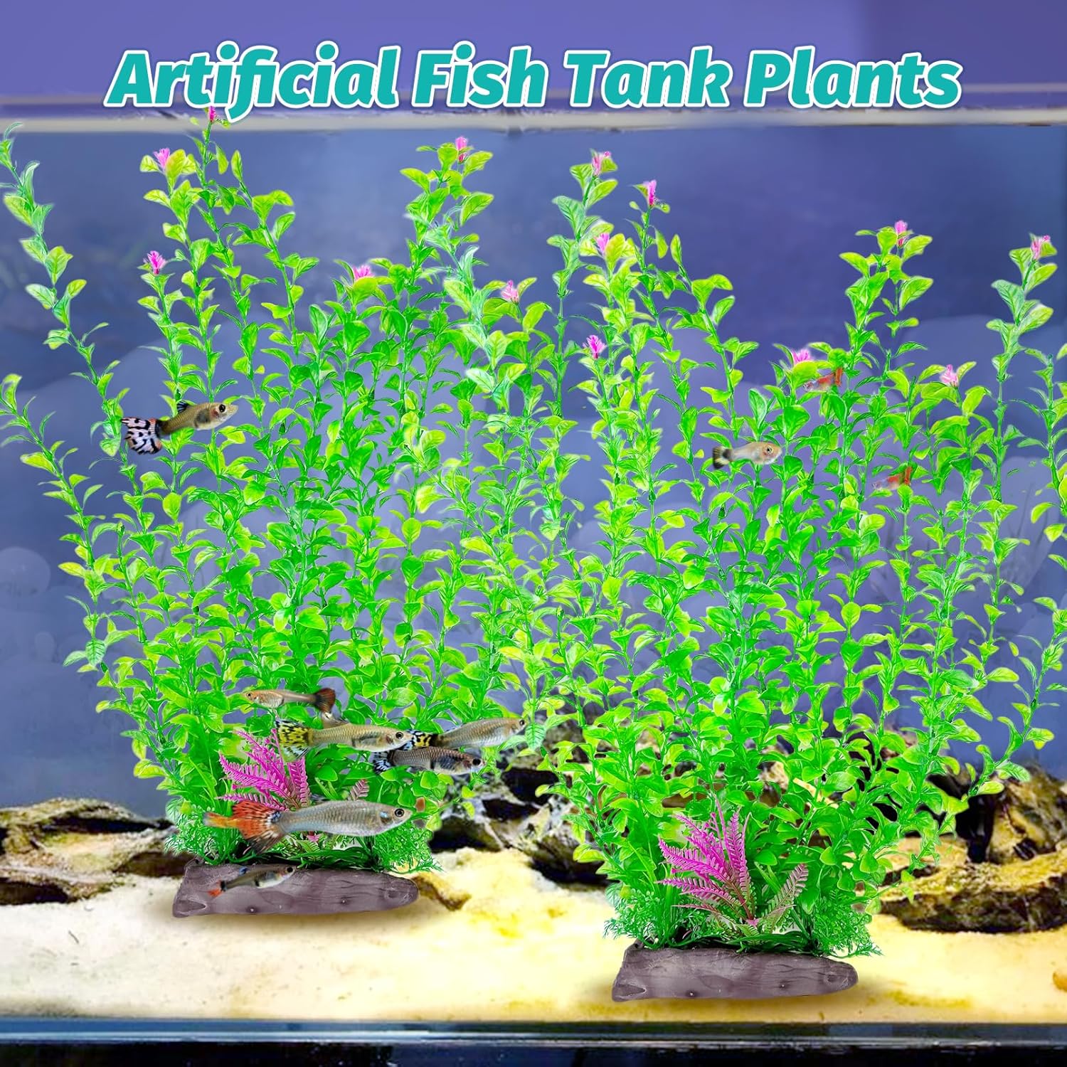 - ARTIFICIAL AQUARIUM PLANTS ADD LIFE TO YOUR AQUARIUM : By combining different aquarium equipment and decorations, you can be as creative as you want and create a unique aquarium landscape that fish tank plant plastic adds a touch of joy and vitality to your fish tank. The aquarium decor plastic plants fits most aquariums, such as 10 gallon, 20 gallon, 30 gallon or larger aquariums. NOTE: Tall artificial fish tank plants may be crushed and deformed during packaging, place in warm water at 104 - 140 degrees Fahrenheit to return to its original shape