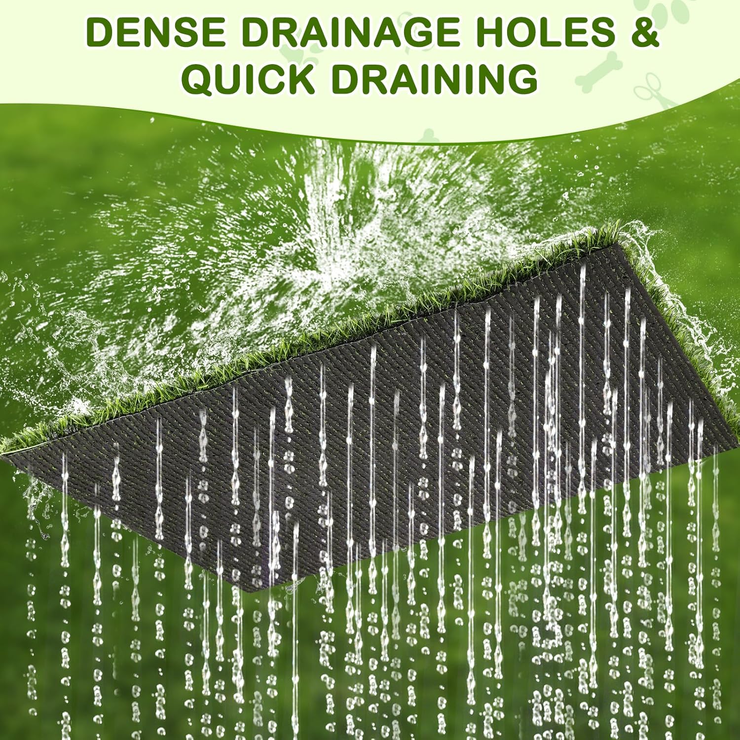 - Quick Drainage & Odorless: Our fake grass pee pads for dogs has dense drainage holes in the back with high water permeability, pearl cotton mat porous design helps urine and moisture drain out quickly, urine immediately seeps through the grass pad for dogs and pearl cotton mat to the bottom of the tray, won't stain your pet's paws, reduces odors and keeps the area fresh.