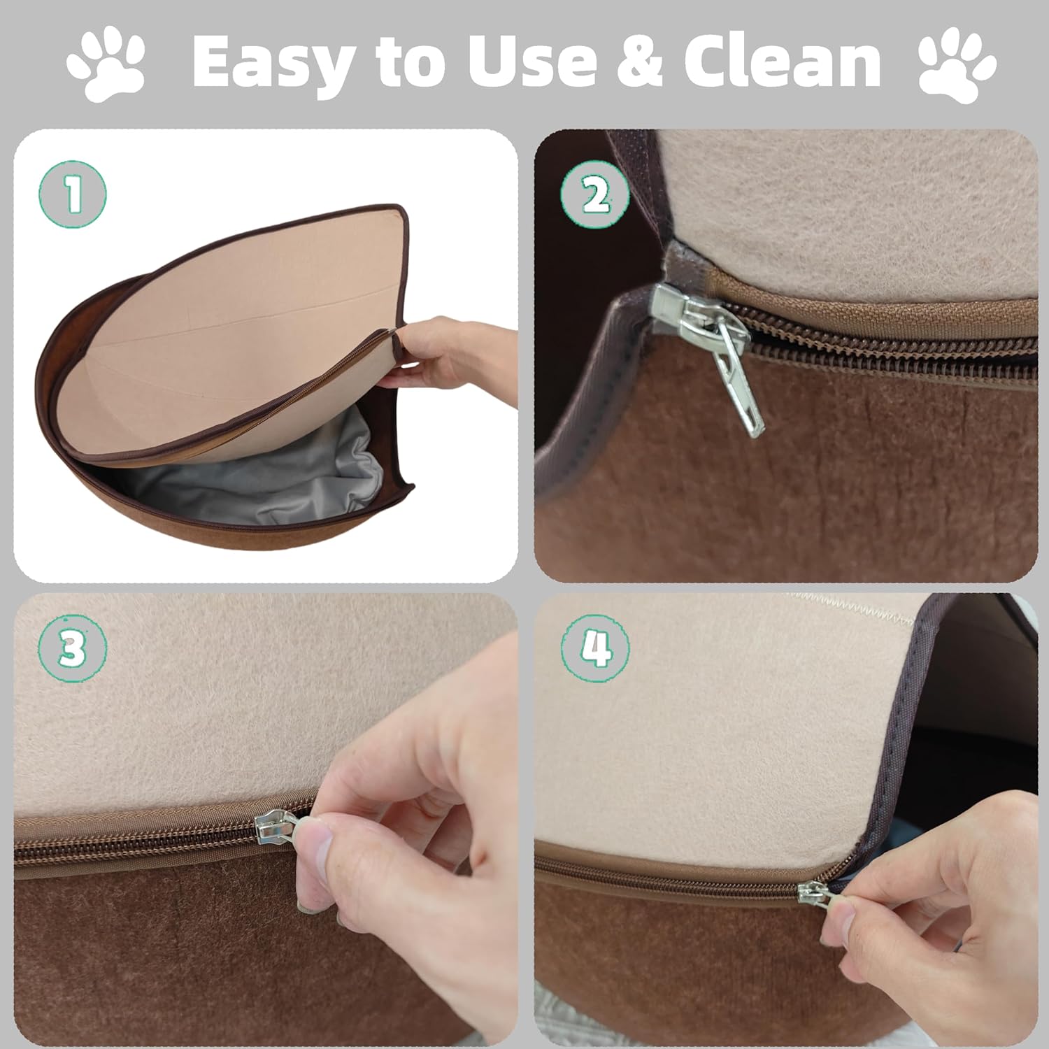 - Cozy Comfo🐱 Unique Design: Smooth zippers design, open the zipper of each nest into two nests, Through the cat face window, you can play with your cat. Fine workmanship, thickened and moisture-proof, central crescent with enough space and fluff balls for the cat or puppy breed to play with.rt: This soft, plush cat bed provides a warm and inviting sleeping spot for your feline friend.