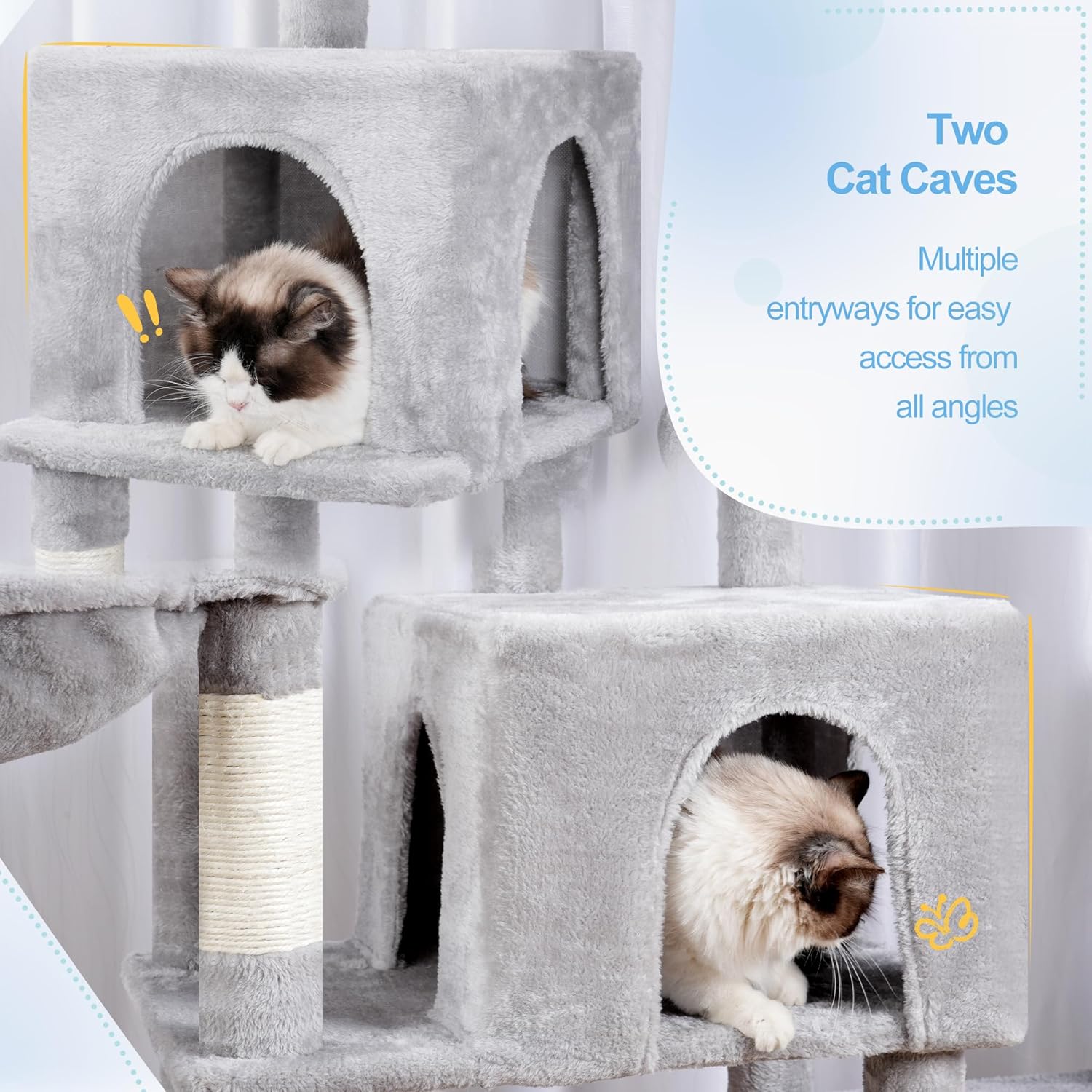 Hey-brother Cat Tree Tower, Scratching Posts with a Extended Part, Wide Platforms, Cozy Condos, Hammocks, Sisal Columns and Ball for Indoor Cats, 70.1 Inches, Light Gray MPJ038W