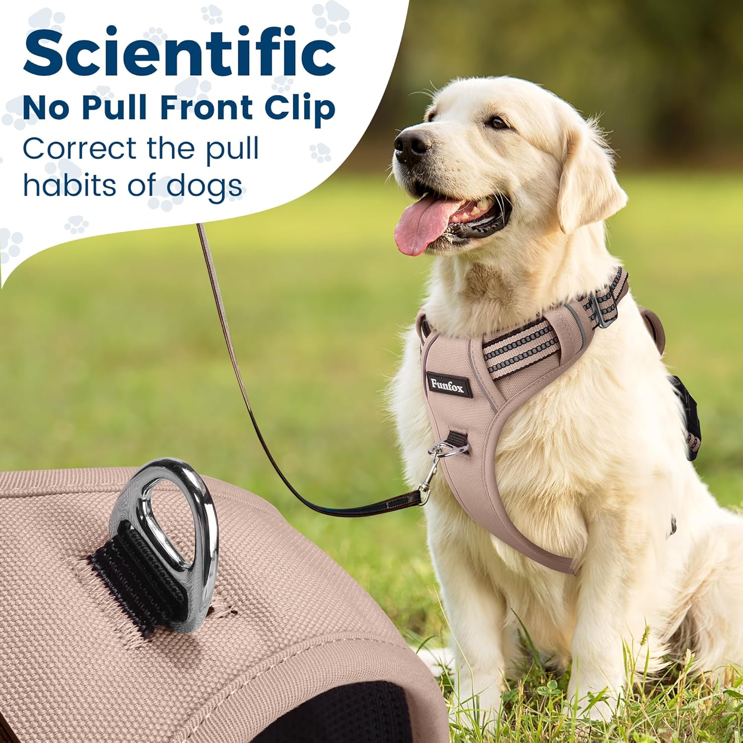 Funfox Dog Harness No Pull, Adjustable Pet Vest Harness, Super Soft Material with Vertical Handle Easy Control, Reflective Night Walking, 2 Leash Clips for Small Sized Dogs, Brown, S