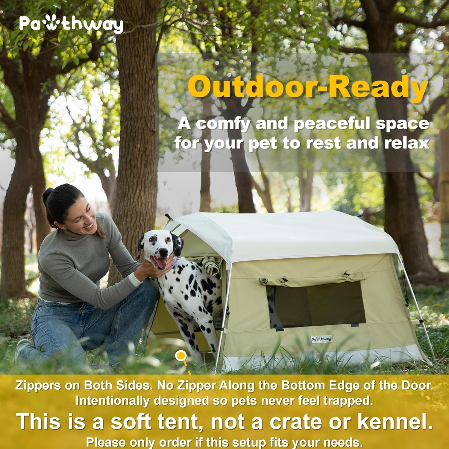 - This Is a Soft Tent, Not a Crate or Kennel: The door zips on both sides, with no zipper along the bottom edge—so your pet can rest or hide without feeling trapped or stressed. This is an intentional design, not a flaw. Do not leave your pet unattended inside the tent, especially in outdoor or unfamiliar settings. Please only order if this setup fits your needs.