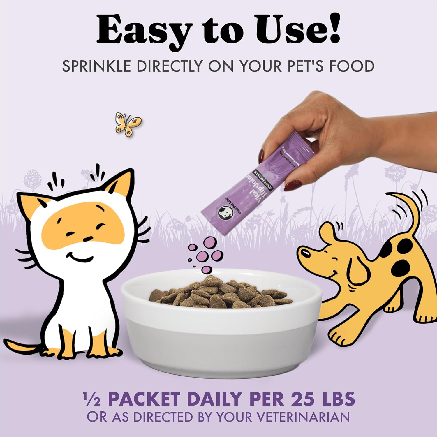 - Easy to Use - Individual packets make it easy to put our hip & joint powder directly on your dog’s food without having to stick your hand inside a pouch.