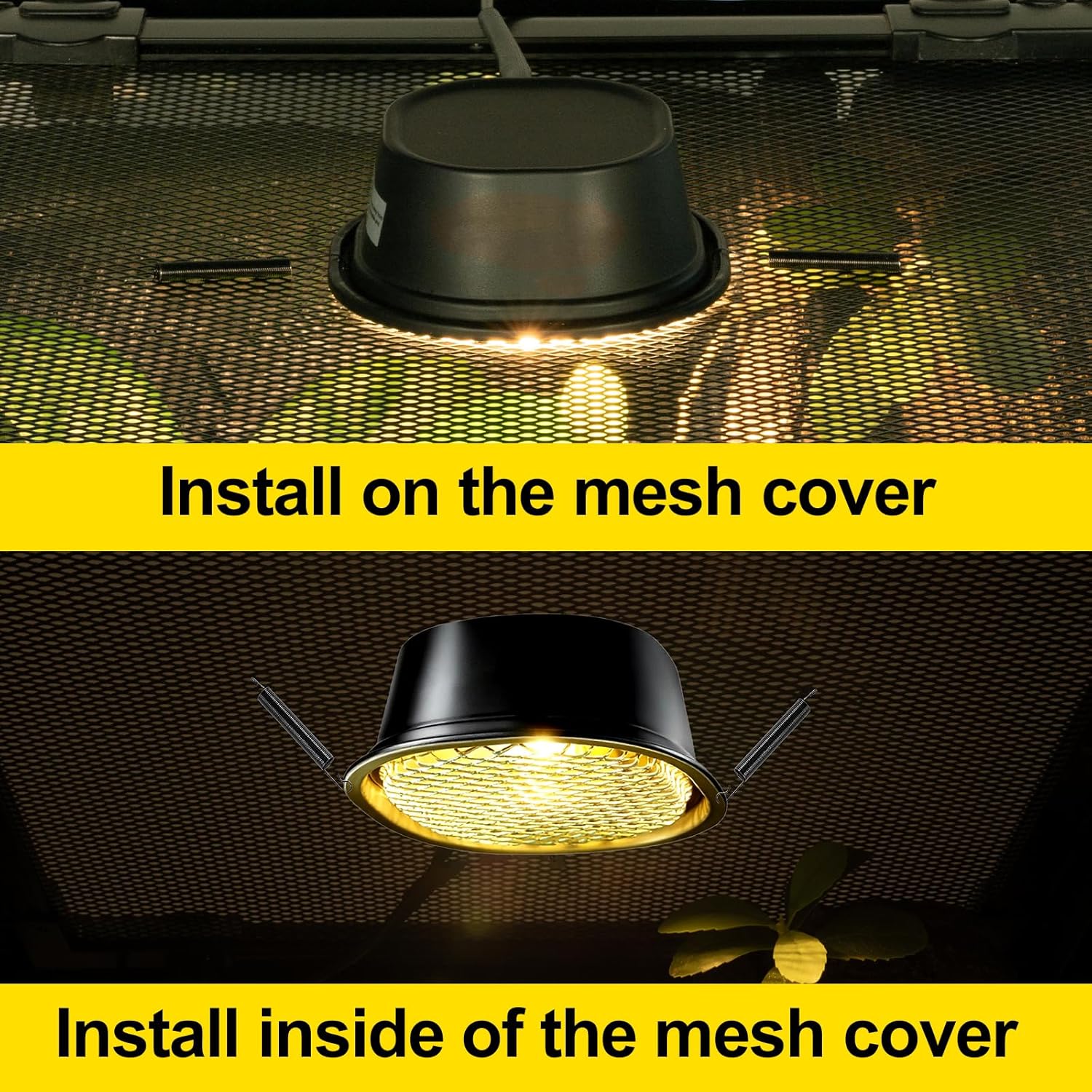 - Enhanced Safety Design: The basking lampshade integrates a protective mesh barrier, preventing reptiles from direct heat source contact. Eliminates the risk of potential accidents or injuries