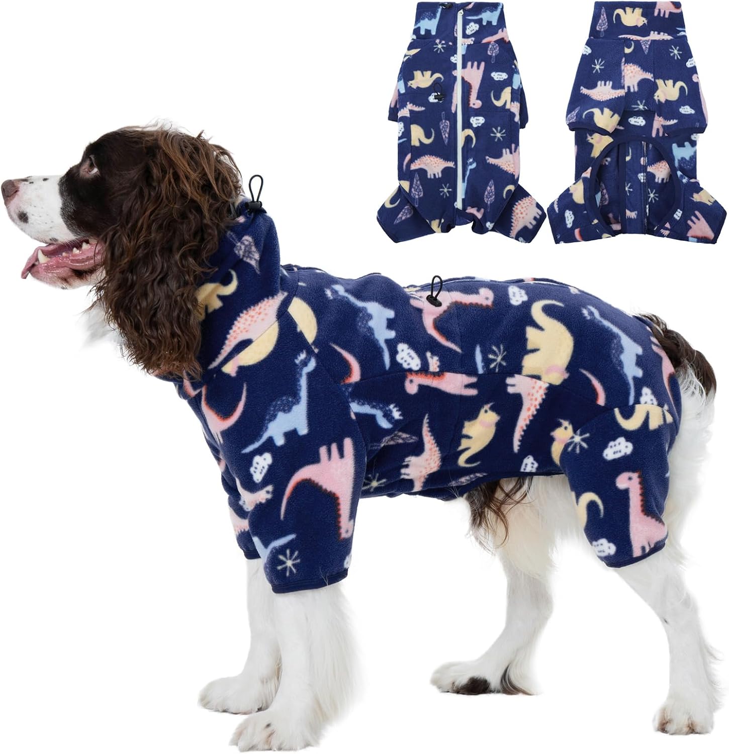 ROZKITCH Dog Clothes Large Sized Pajamas, Pet Windproof Warm Cold Weather Jacket Vest with Reflective Zipper, Jumpsuit Apparel Outfit Clothes for Medium Dog Dinosaur L