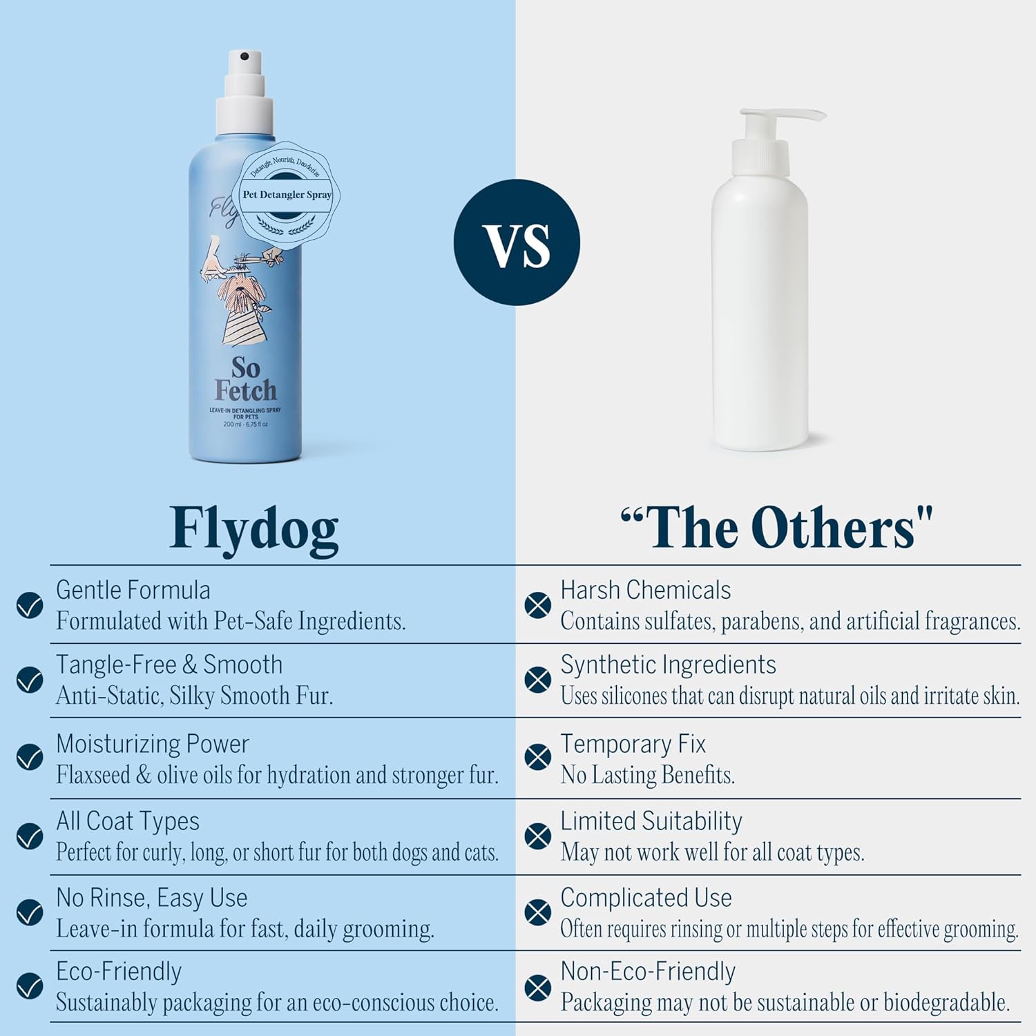 FlyDog Detangler Combo for Dogs & Cats – Leave-in Hair Detangler Spray for Tangle-Free Grooming & Tailored Comb for Dematting & Deshedding | Coat Conditioner | Deodorizing & Long-Lasting Freshness