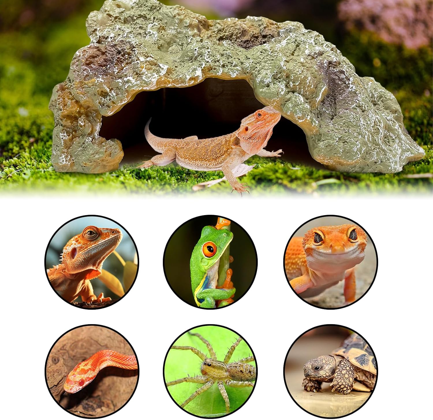 - Multiple Uses: This reptile hide cave is not only a great habitat but also a perfect decoration. This realistic cave will make your aquarium look more interesting, attract your pet's attention, and provide visual enjoyment for both you and your pet. Great for bearded dragons, lizards, snakes, geckos, turtles, spiders, frogs, fish, and other small reptiles