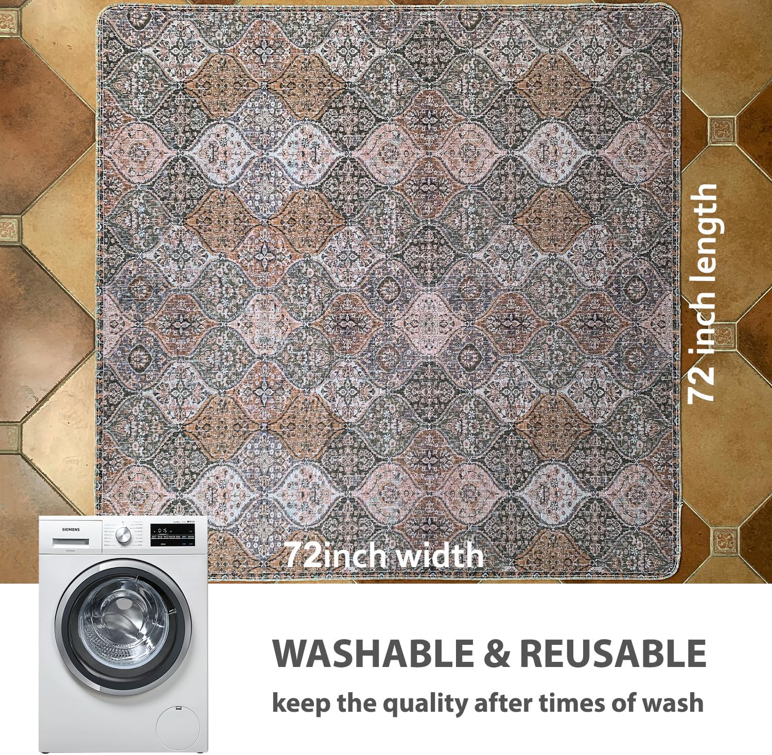 nunubaby Washable Pee Pads for Dogs, Stylish, Non-Slip and Leak-Proof Pee Pads. Reusable Potty Pads for Dogs for Crates and Floors.(Brown/Multi, 72" x72")