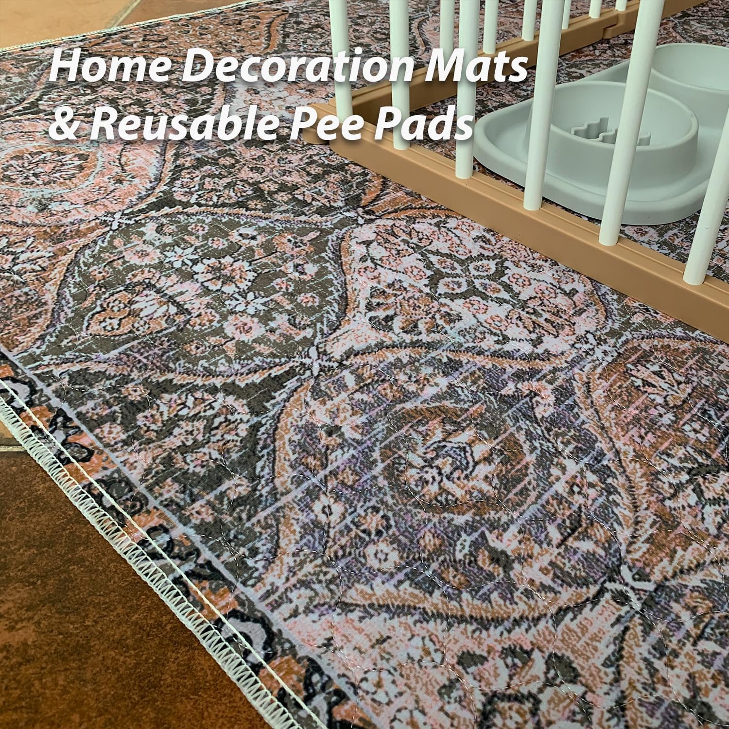 nunubaby Washable Pee Pads for Dogs, Stylish, Non-Slip and Leak-Proof Pee Pads. Reusable Potty Pads for Dogs for Crates and Floors.(Brown/Multi, 36" x36")