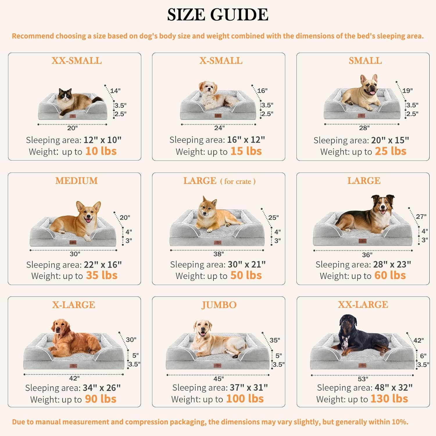 Comfort Expression Large Dog Beds Waterproof Orthopedic Foam Dog Sofa Beds Comfy Pet Bed with Washable Removable Cover & Non-Slip Bottom(Large,Grey White)