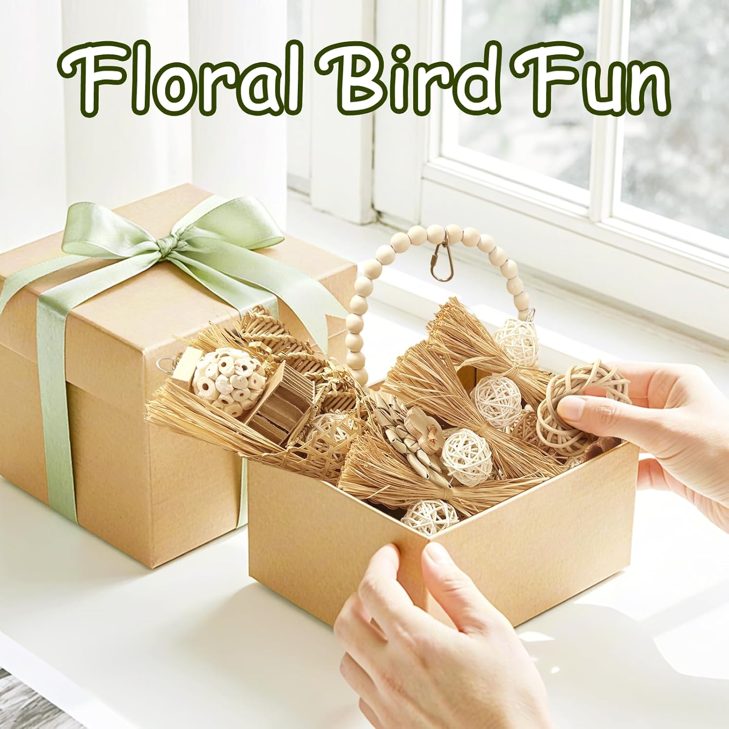 - All-Natural Materials, No Plastic or Dye: Crafted from bamboo, rattan balls, wooden beads, prickly ash wood, sola balls, pine cone, rattan column, and corn husk, this set of natural bird toys offers a safe and engaging chewing experience. No harmful chemicals—just pure nature for your bird's beak.