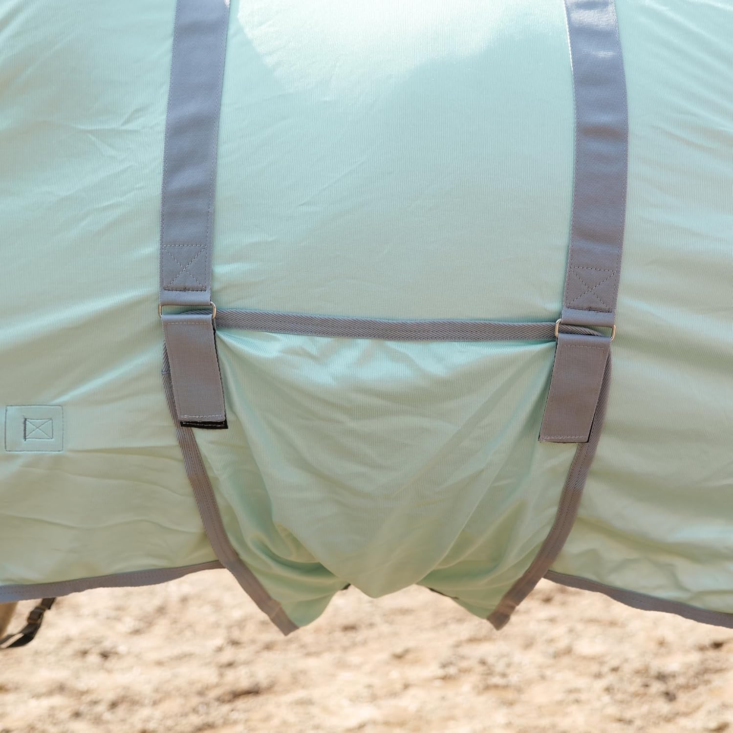 Horse Fly Sheet with Detachable Neck Cover & Belly Wrap, Adjustable Fly Sheet for Horses, Ventilated Airflow Mesh Equine Cooling Summer Flysheet Green 84