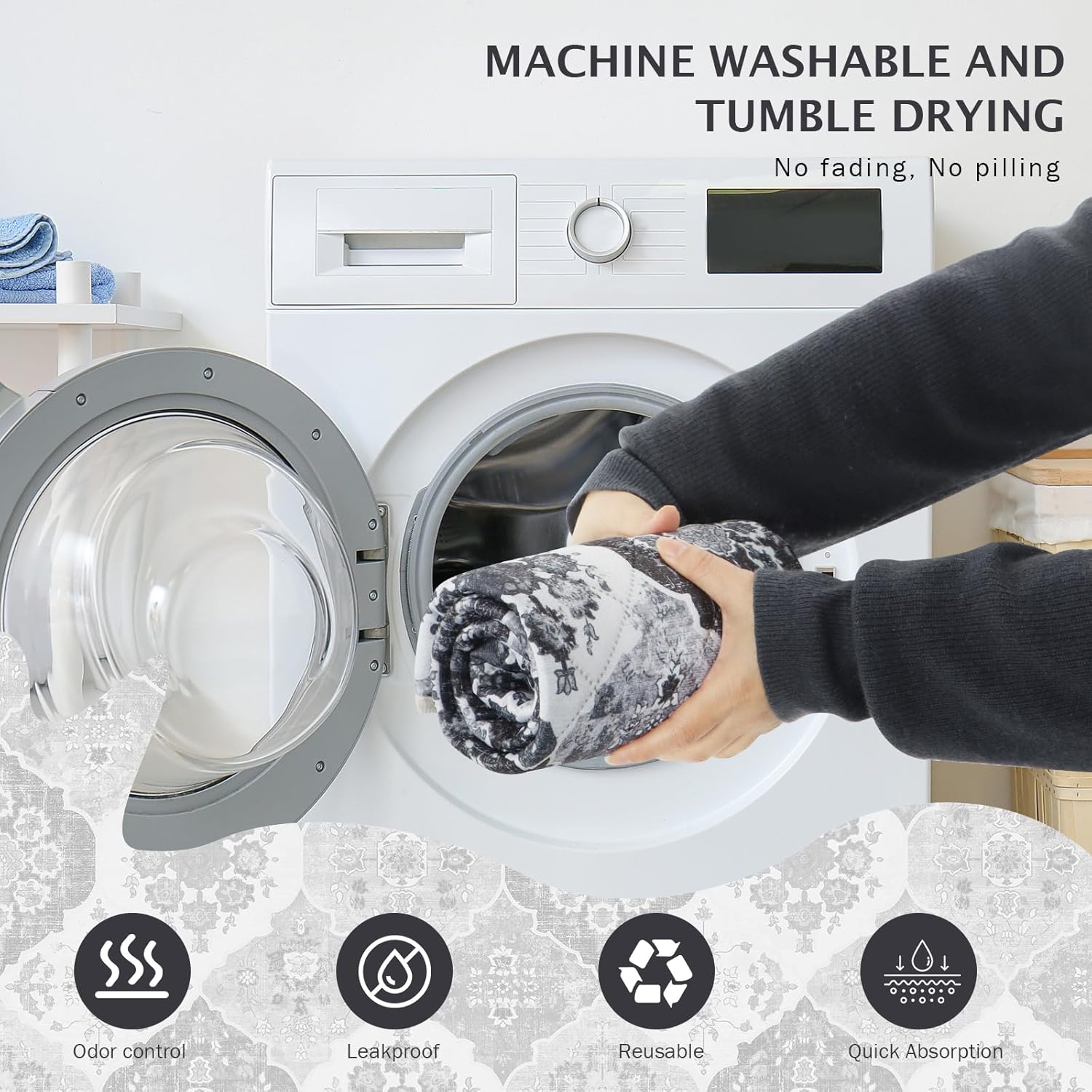 - 【Fashionable and Non-Slip】Our bohemian-print design adds a natural touch to the potty pads for dogs, giving your room a warm, casual vibe. And the non-slip bottom design makes the pet pee pads can achieve a certain fixed effect, you can put it anywhere you want. Soft and non-slip material makes it safer for dogs to use the pads.